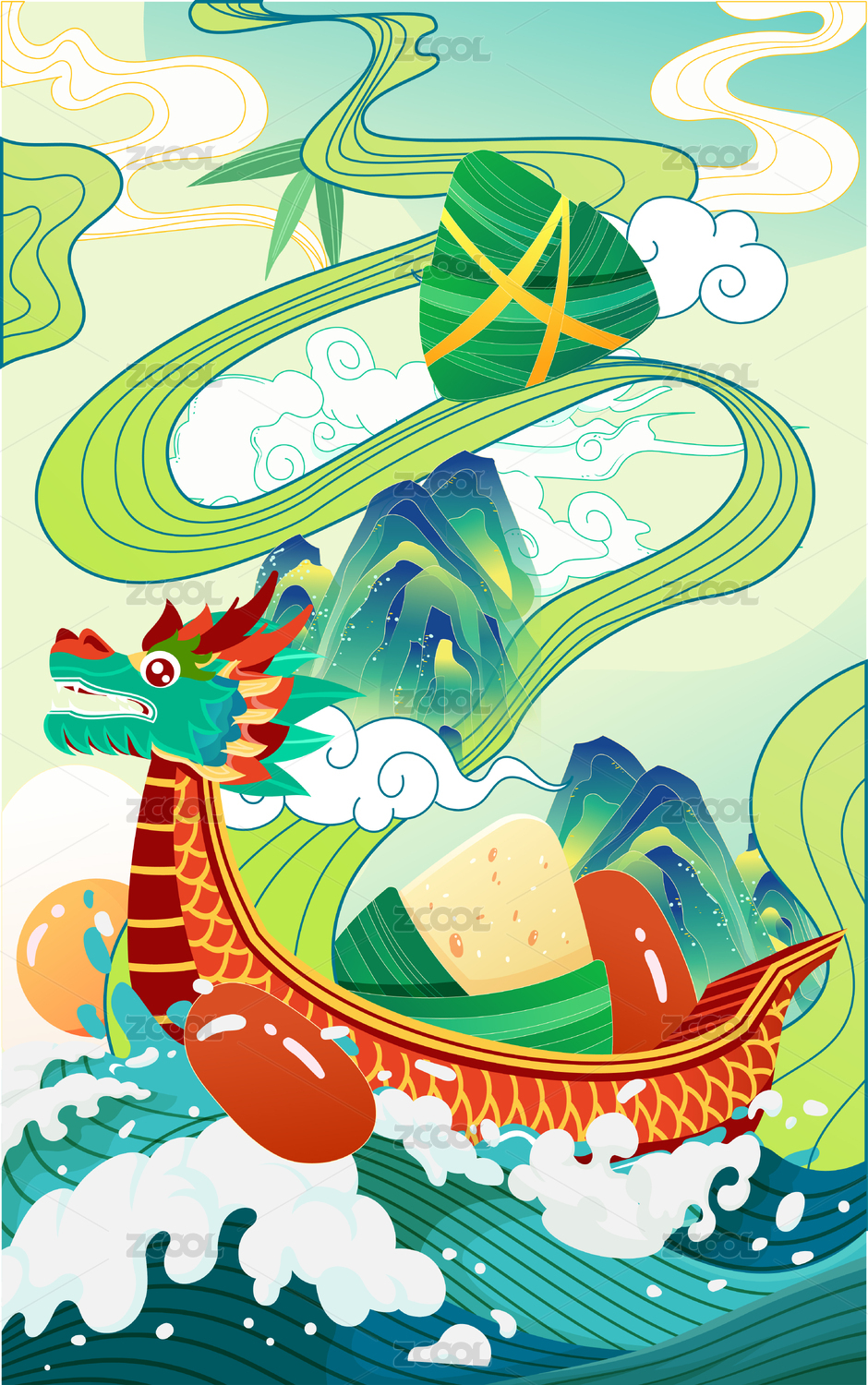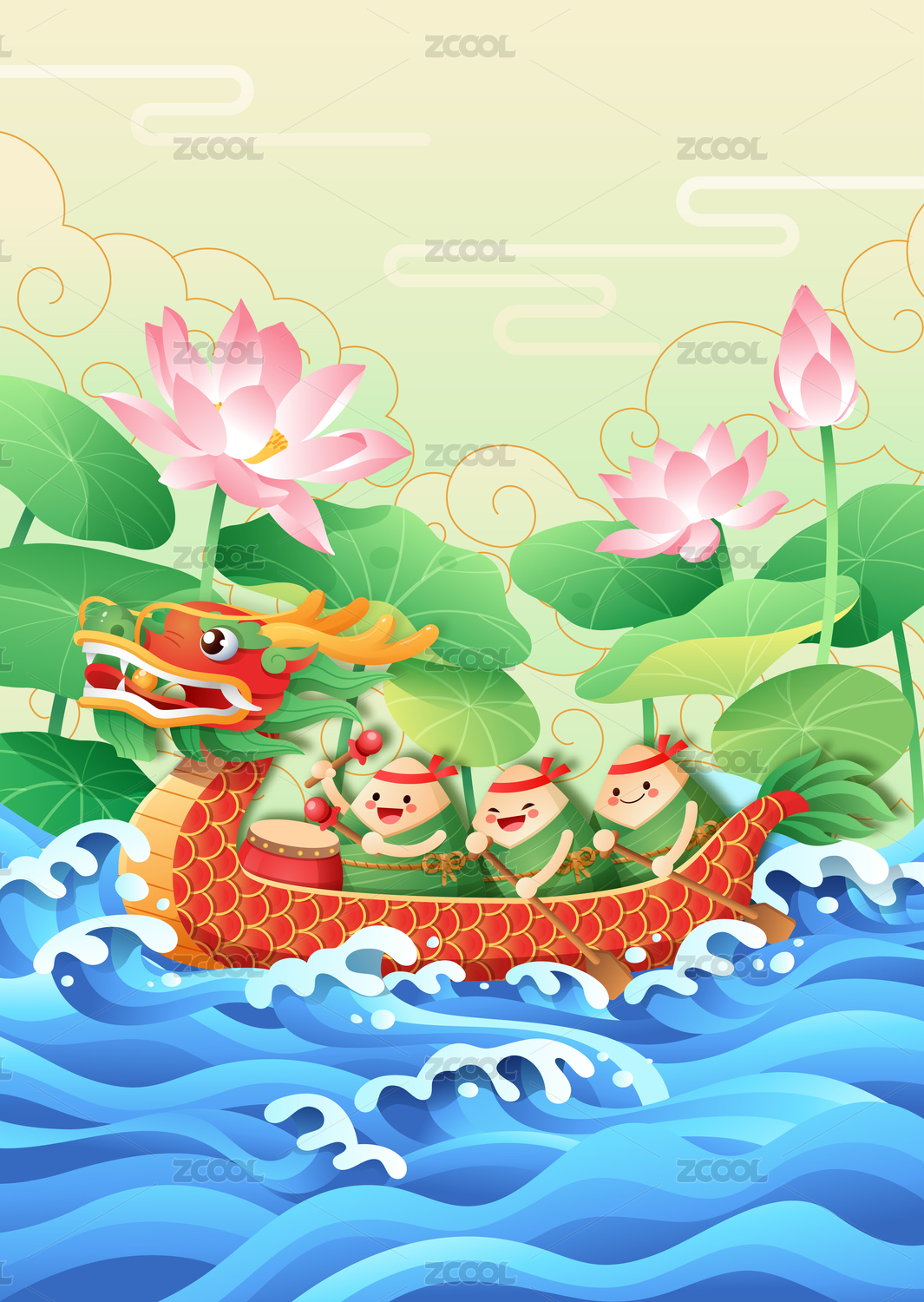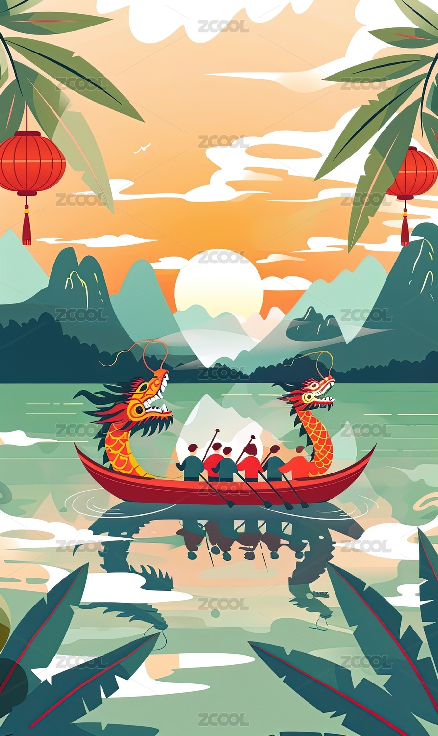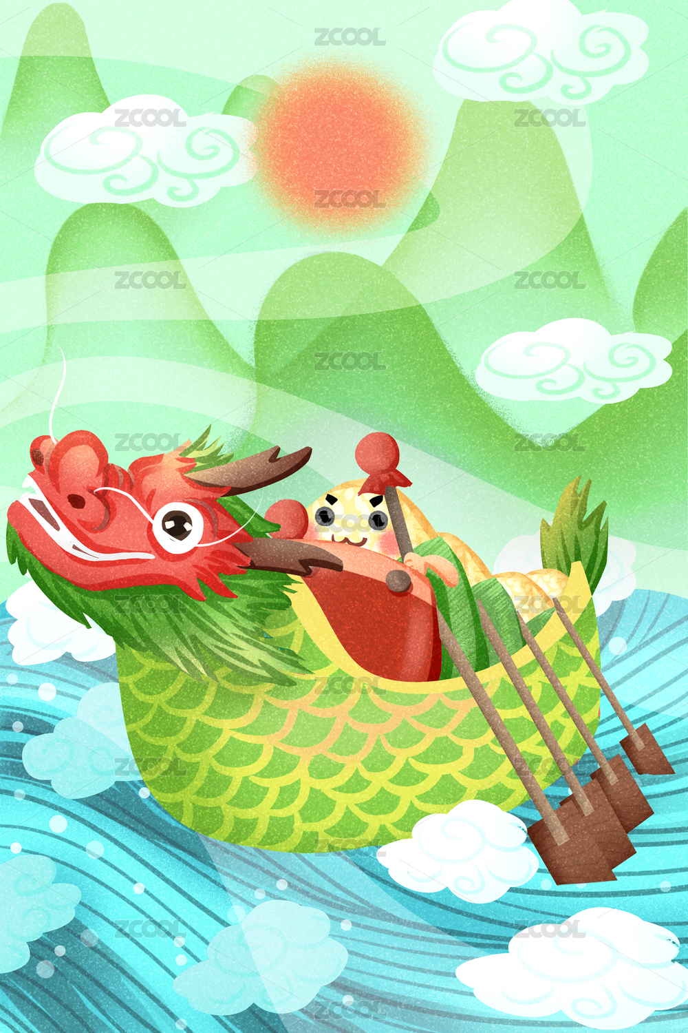 端午节赛龙舟传统节日活动粽子美食国潮插画