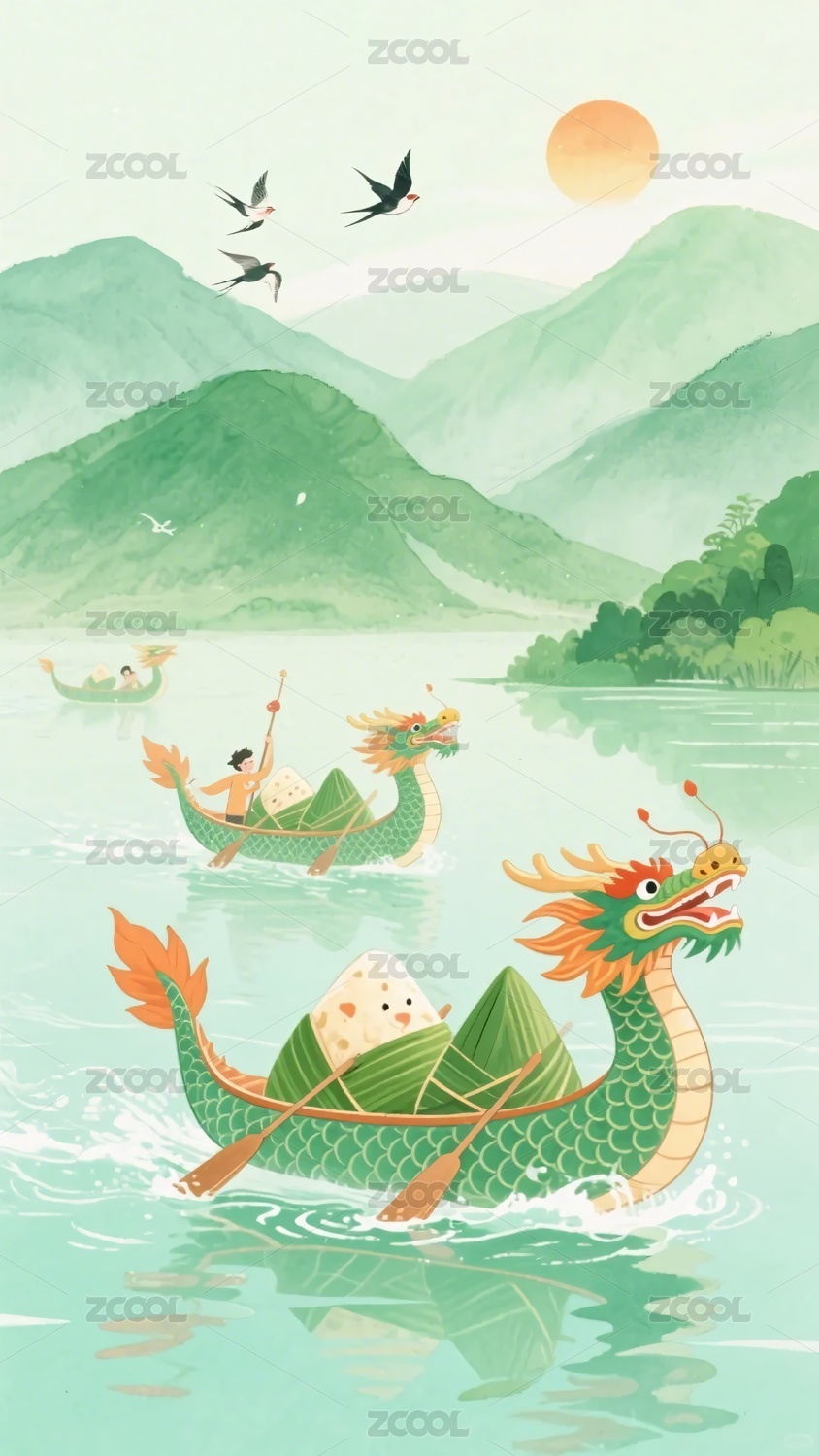端午,五月五,五月初五,龙舟,赛龙舟,粽子,水彩
