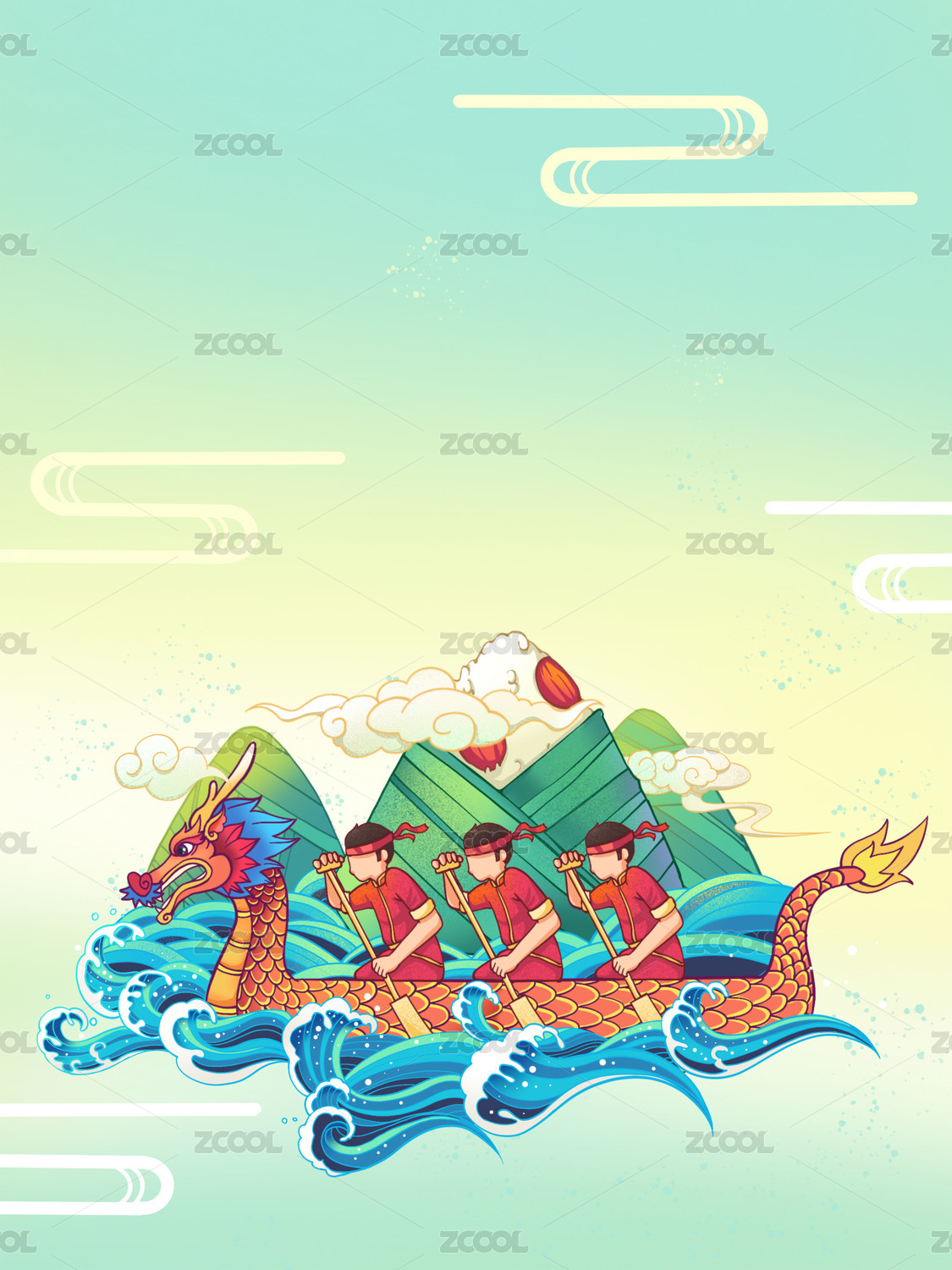 端午节赛龙舟吃粽子插画中国风传统节日海报