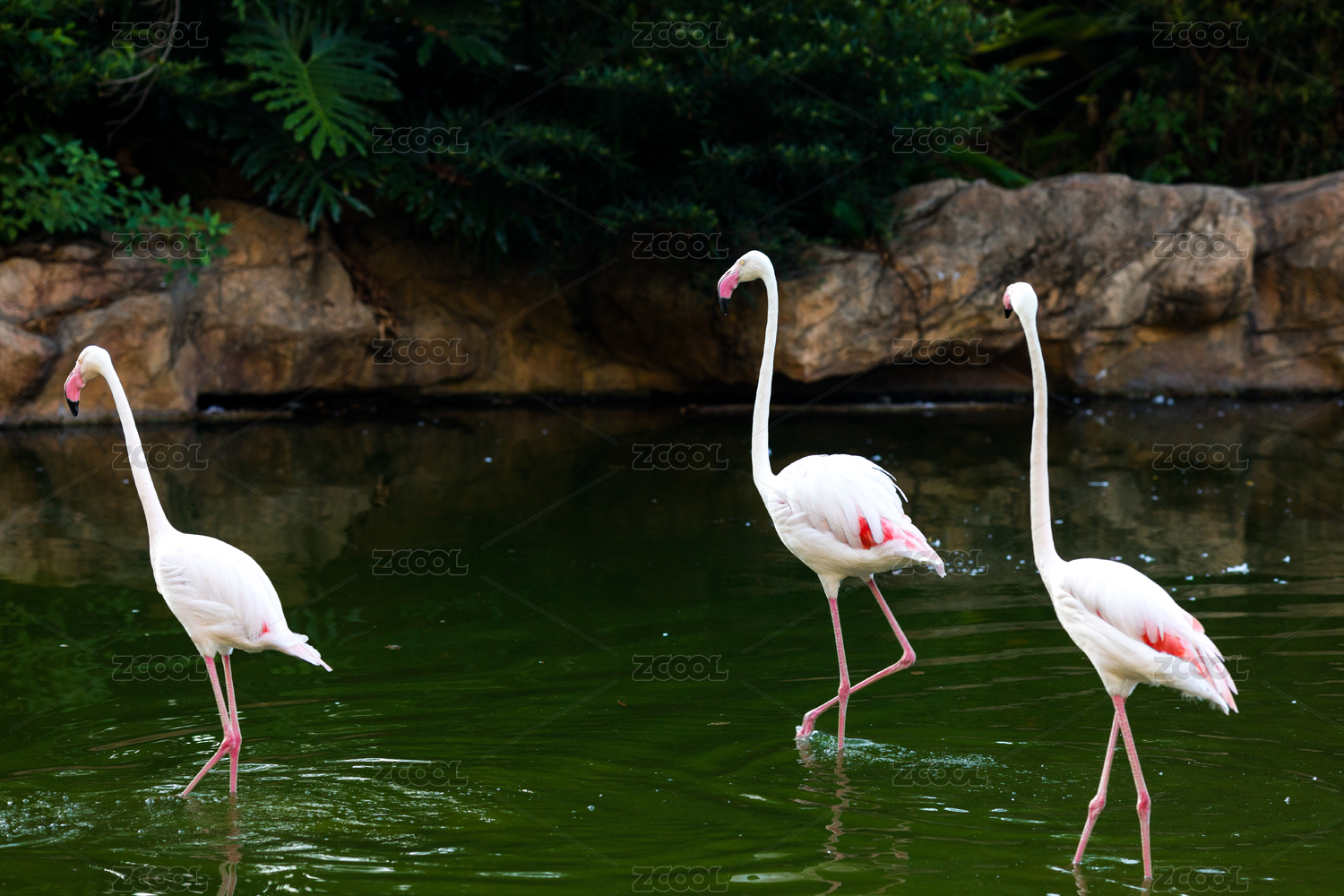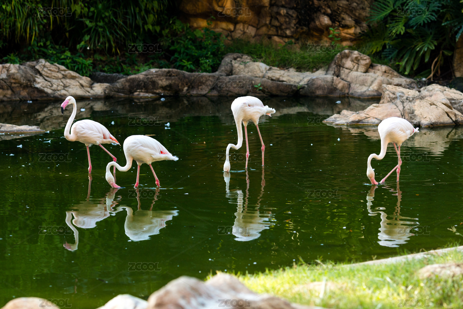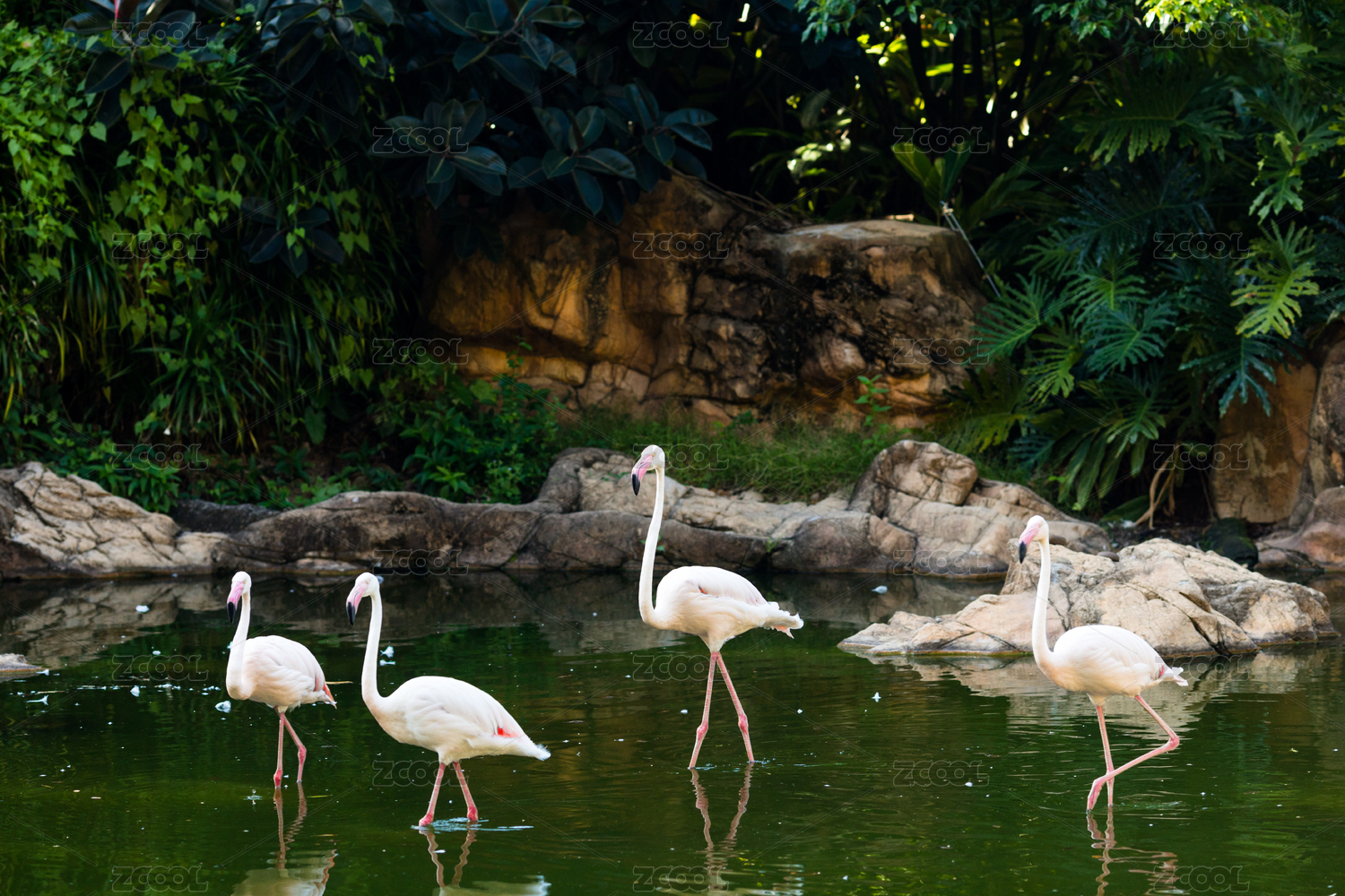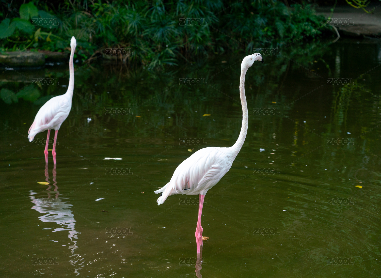 公园水池里的火烈鸟