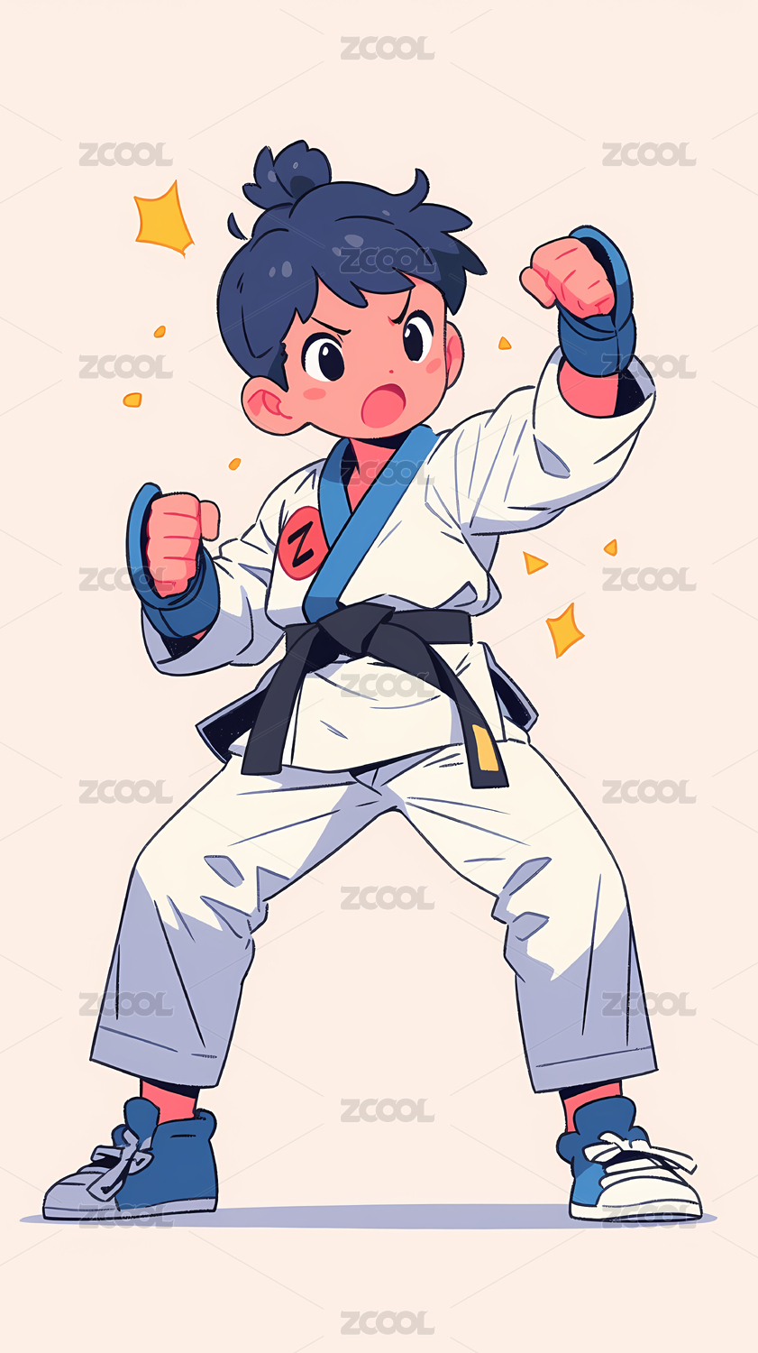矢量,插画,图像,手绘,角色,人物,卡通,简笔画,肖像,跆拳道