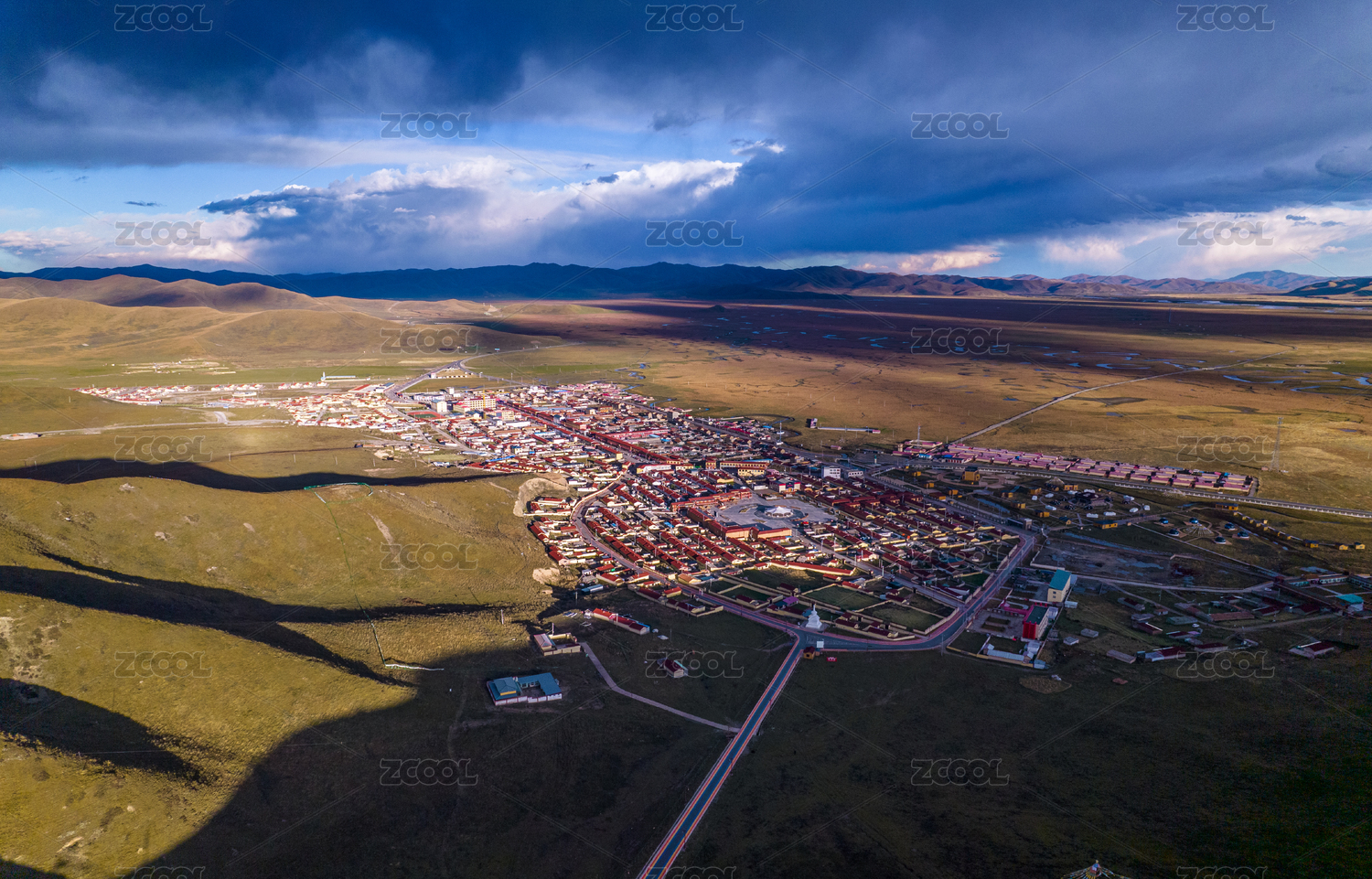 中国甘肃甘南阿万仓城镇红色房屋航拍景观