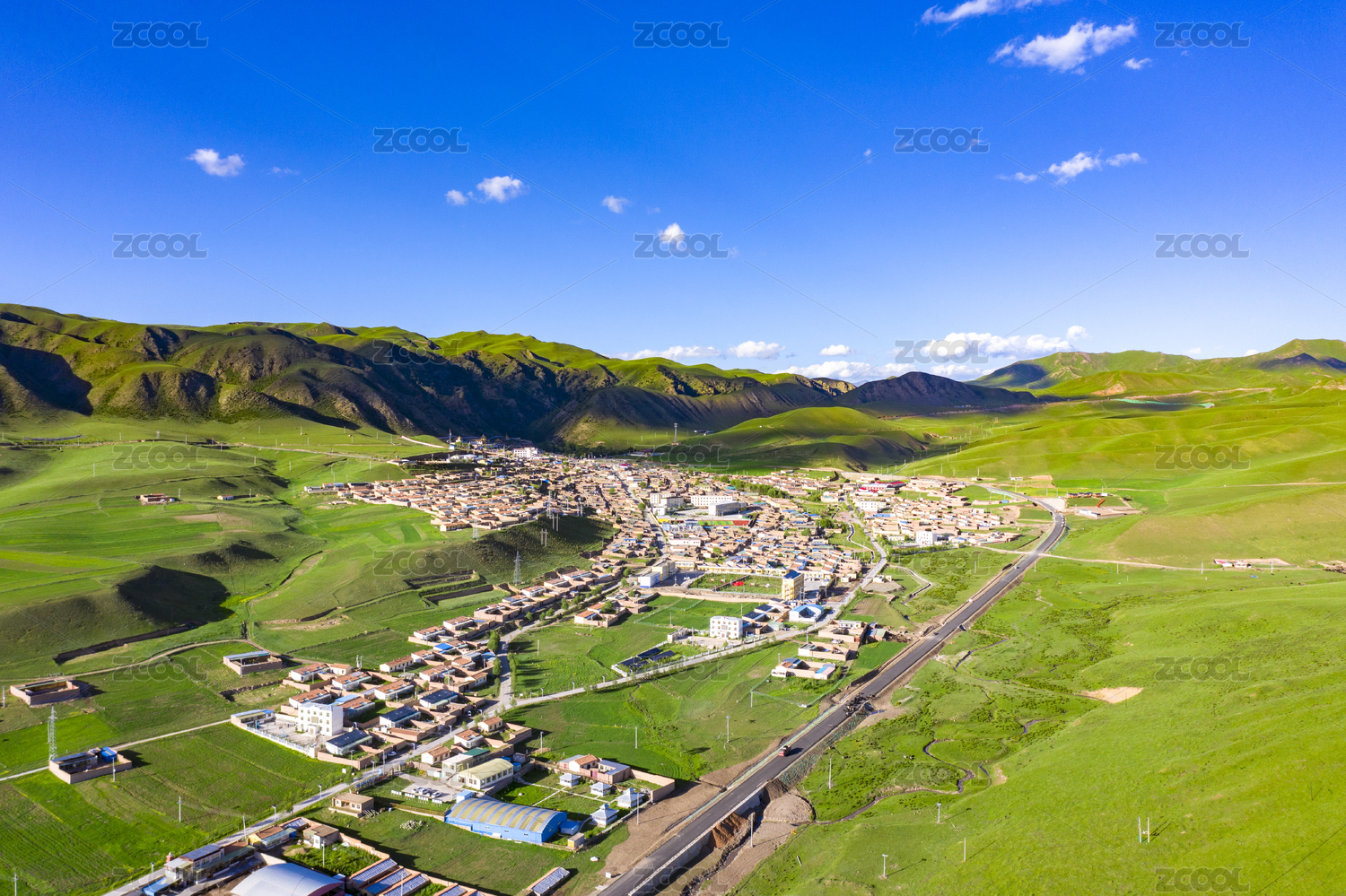 中国四川省阿坝州阿坝县麦尔玛镇航拍