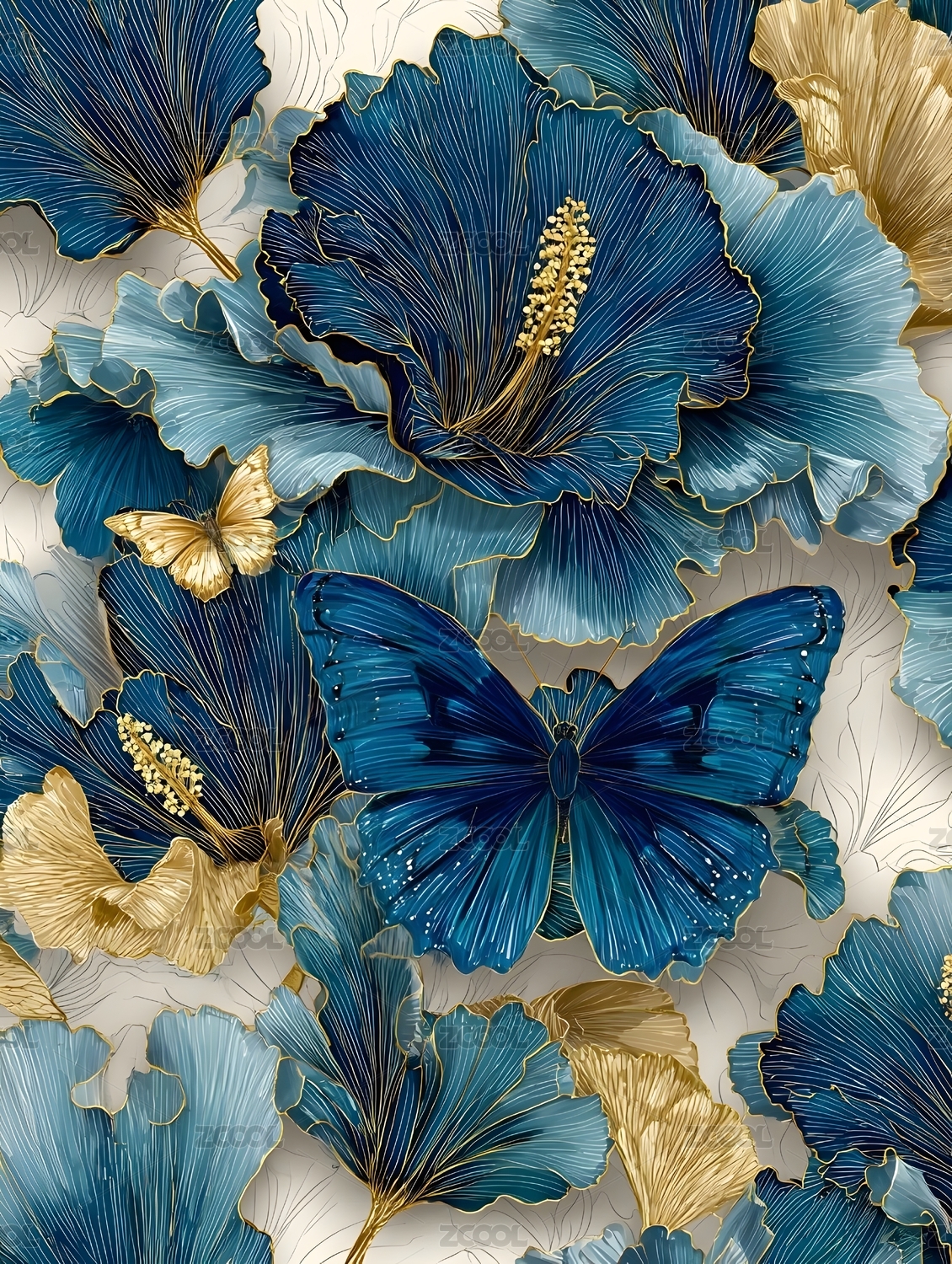 蓝色花卉与蝴蝶图案