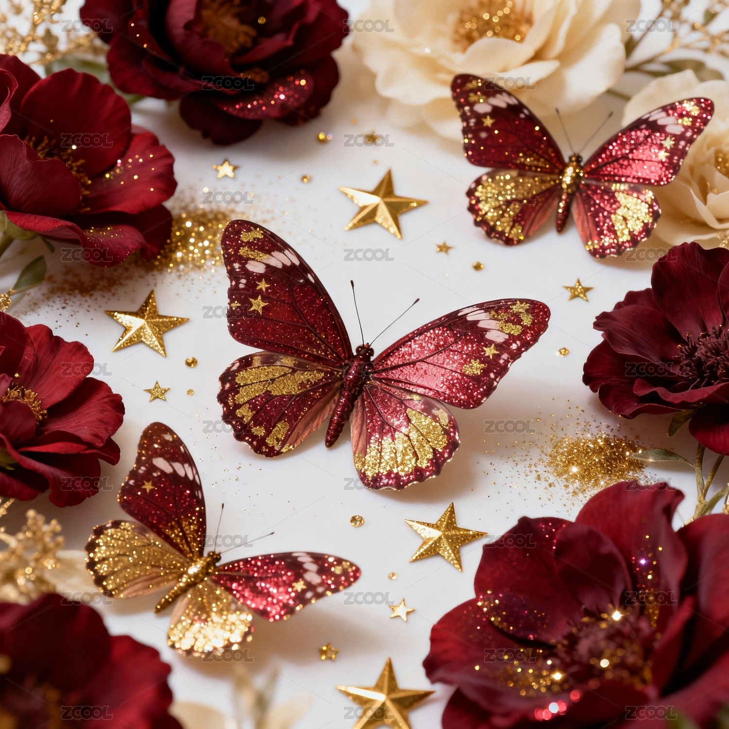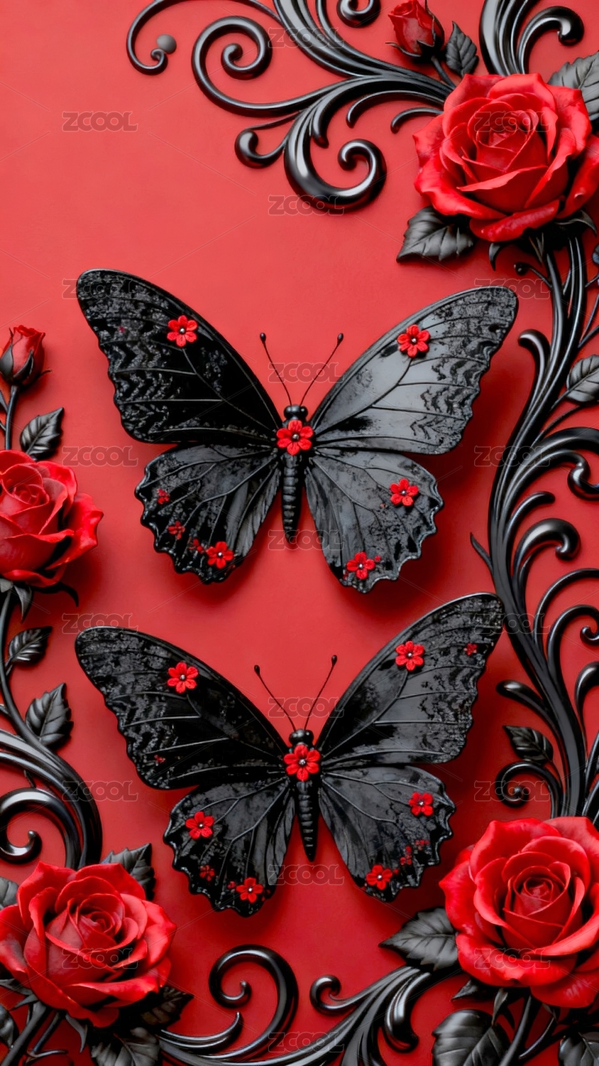 蝴蝶玫瑰华丽装饰场景