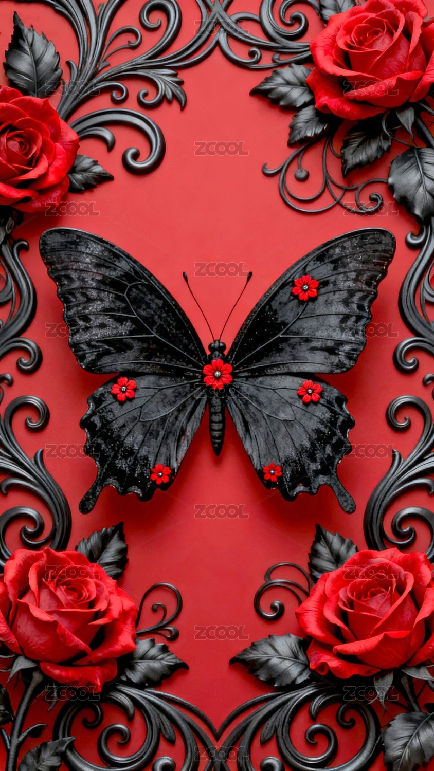 金属,蝴蝶,红色,玫瑰花,背景