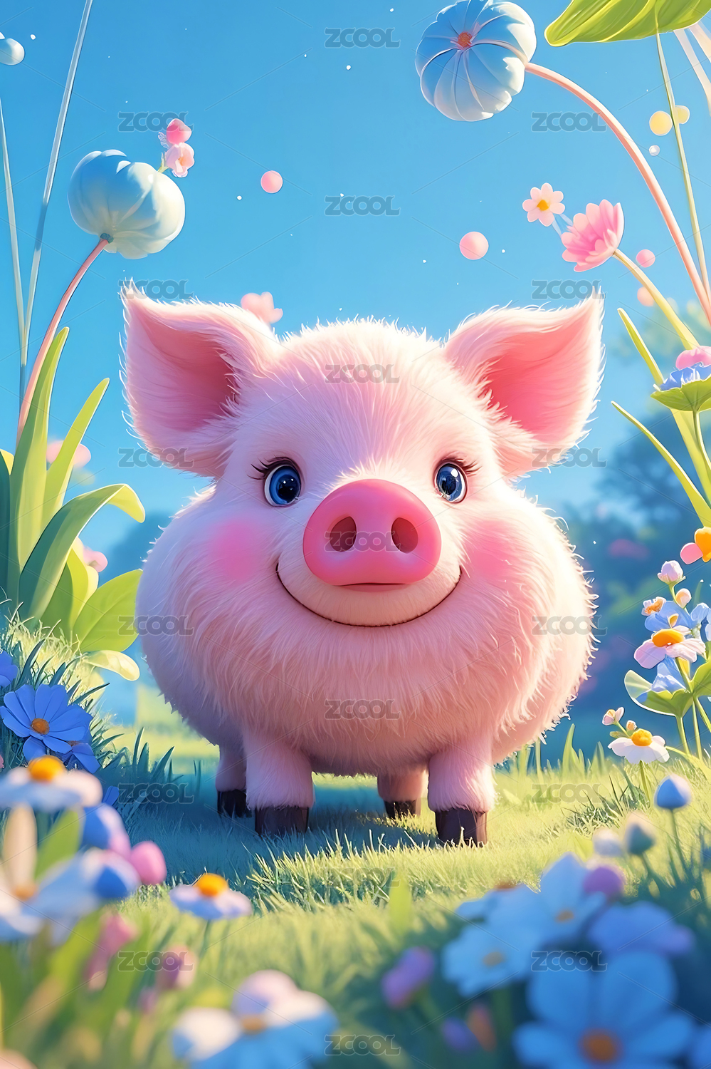 3D毛绒绒质感的可爱卡通猪