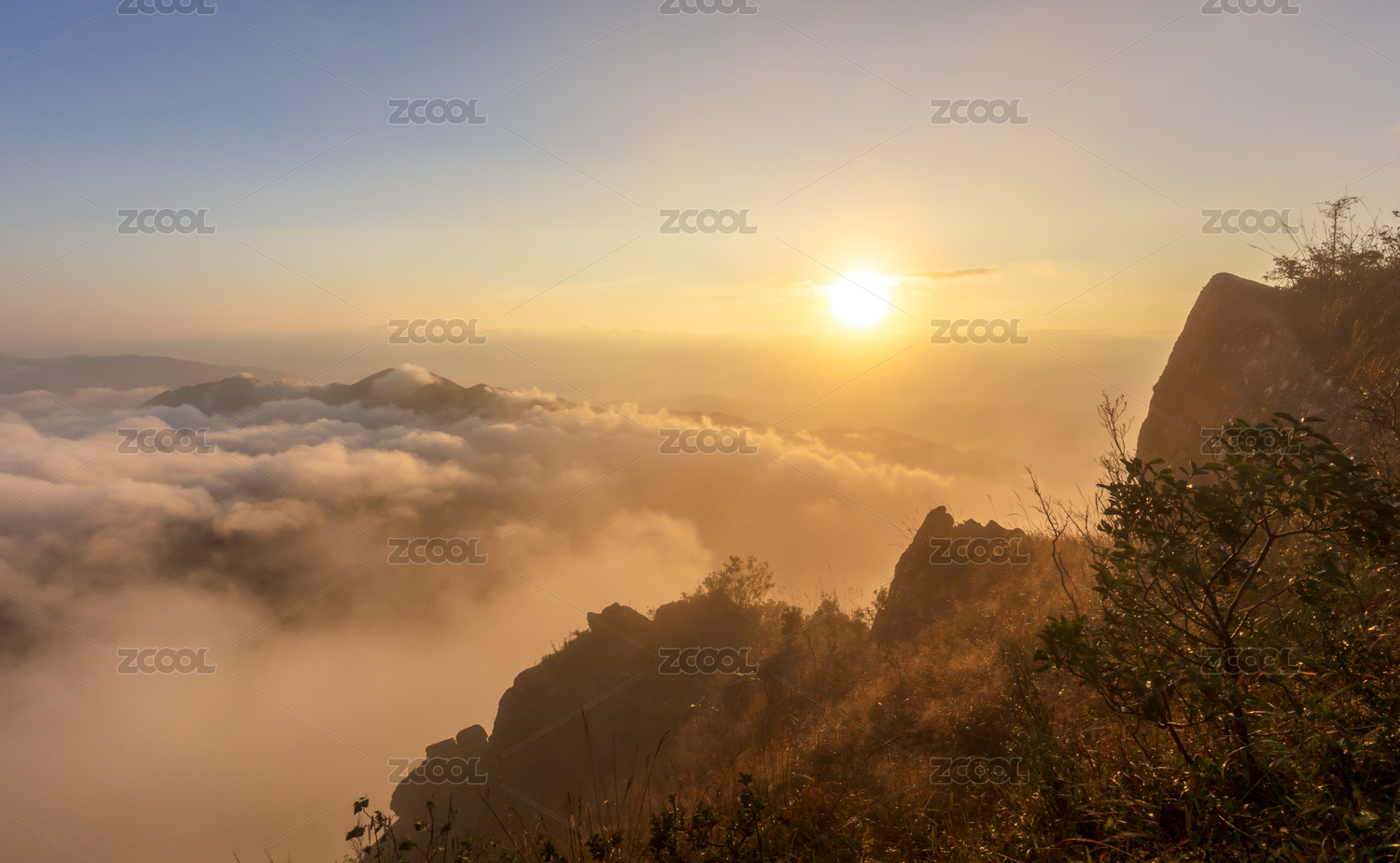 中国安徽省黄山市黄山风景区光明顶日落云海