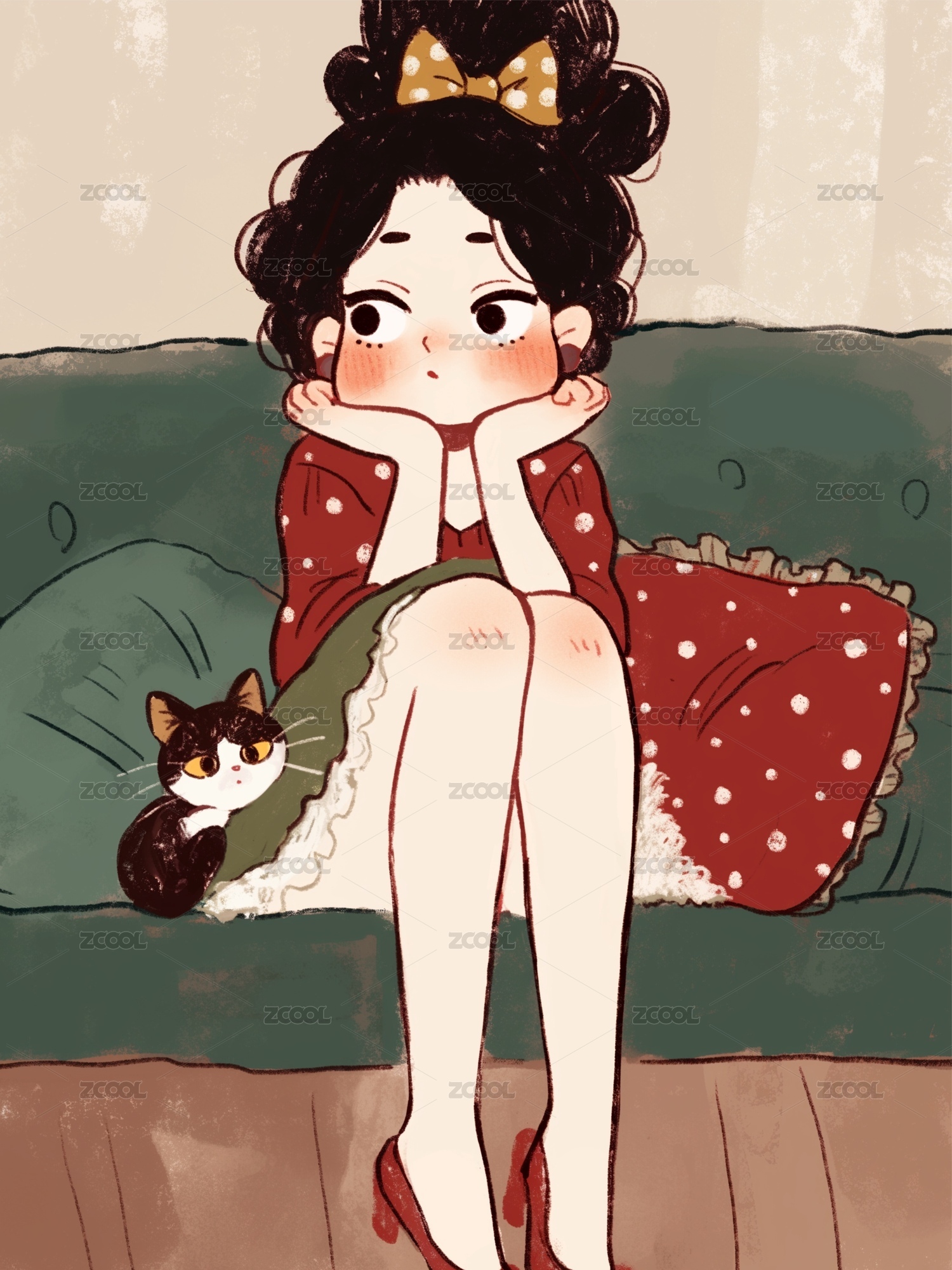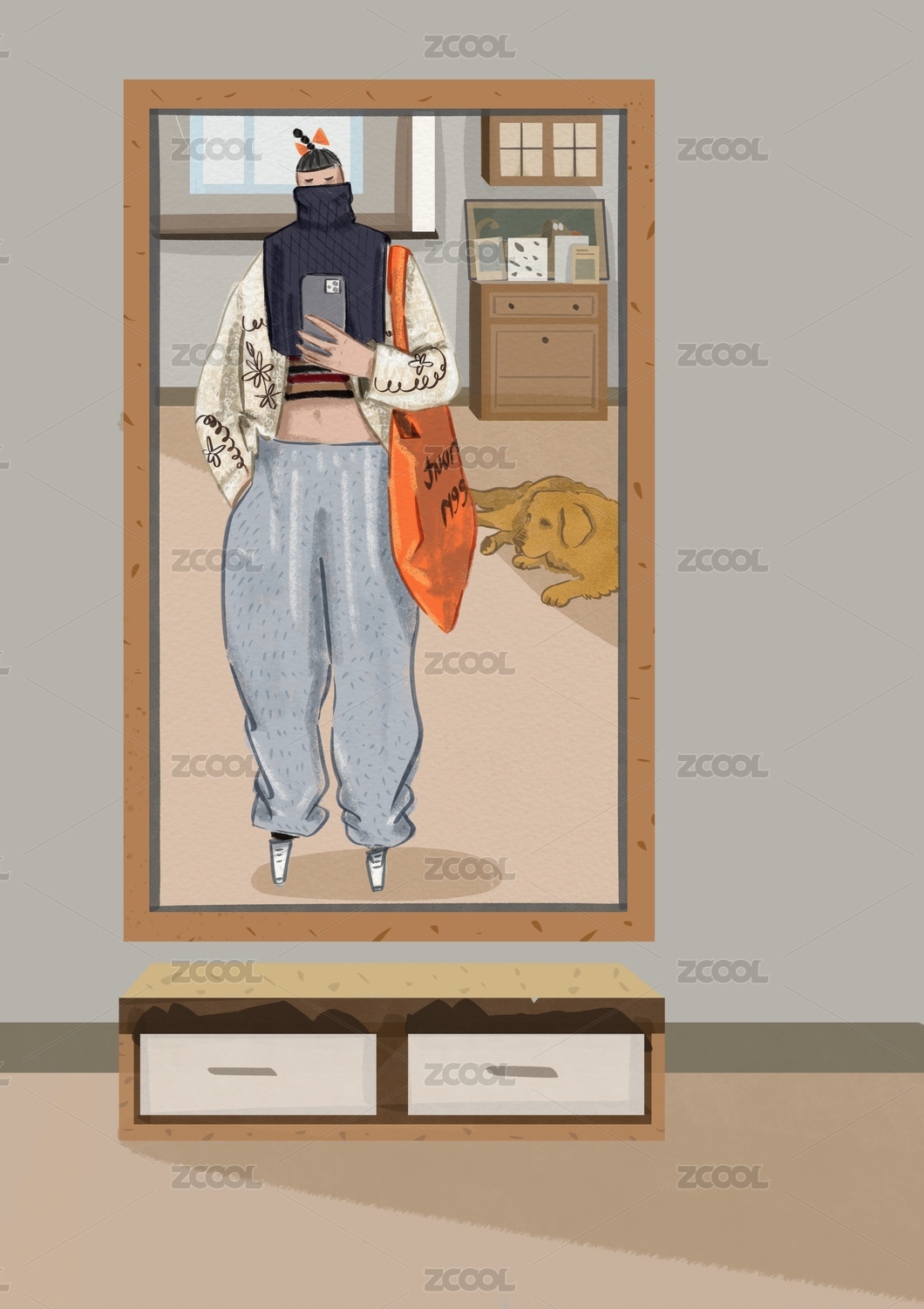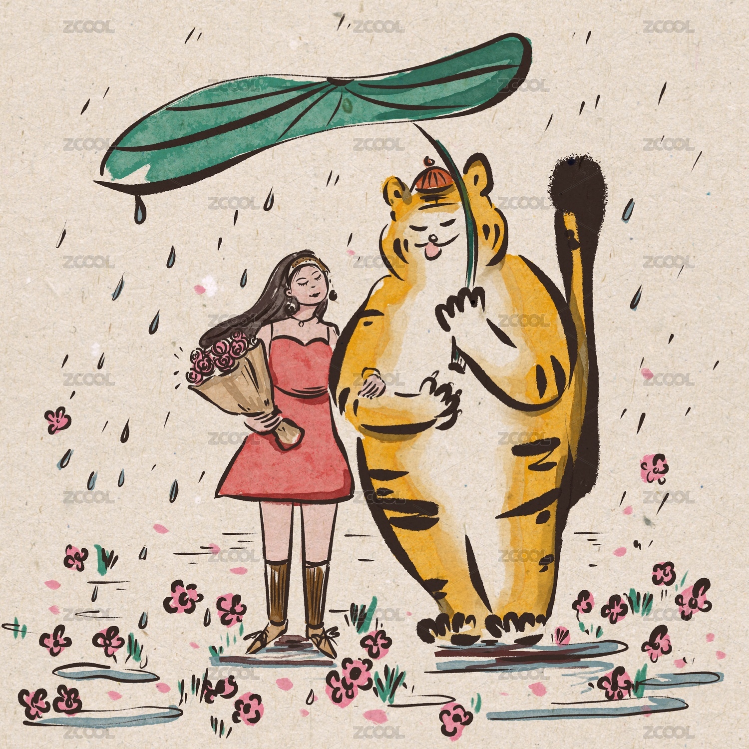 卡通,插图,国风,年画,老虎,努力,搬砖,闺蜜,友谊,减肥