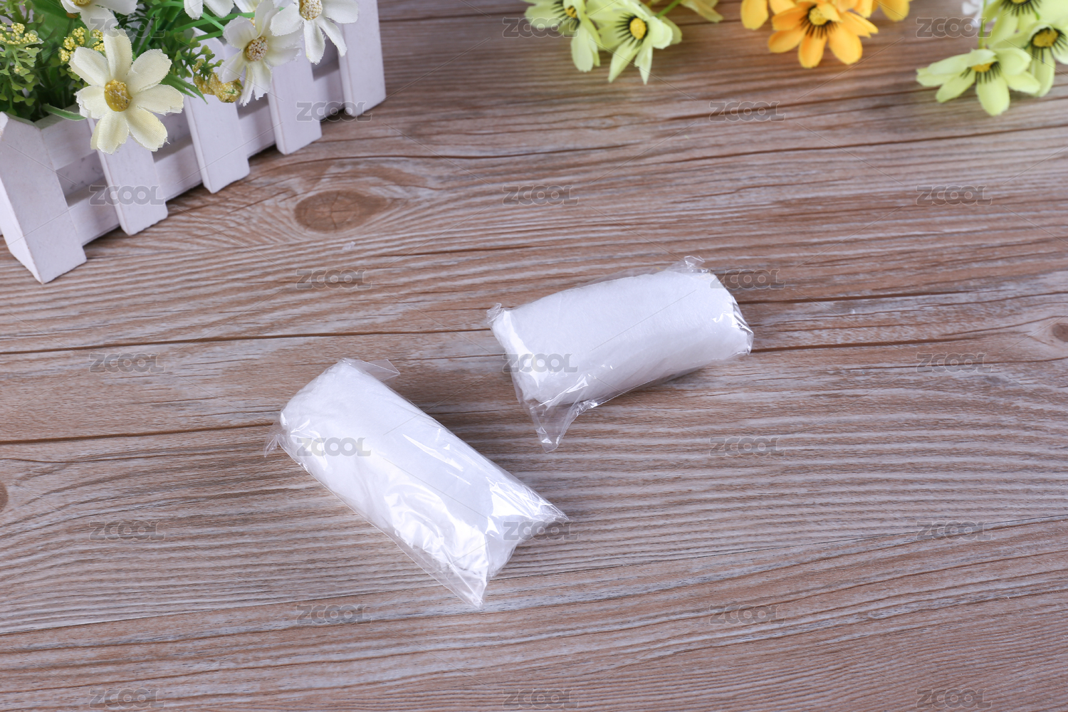 放在木纹背景上的一次性白色床单
