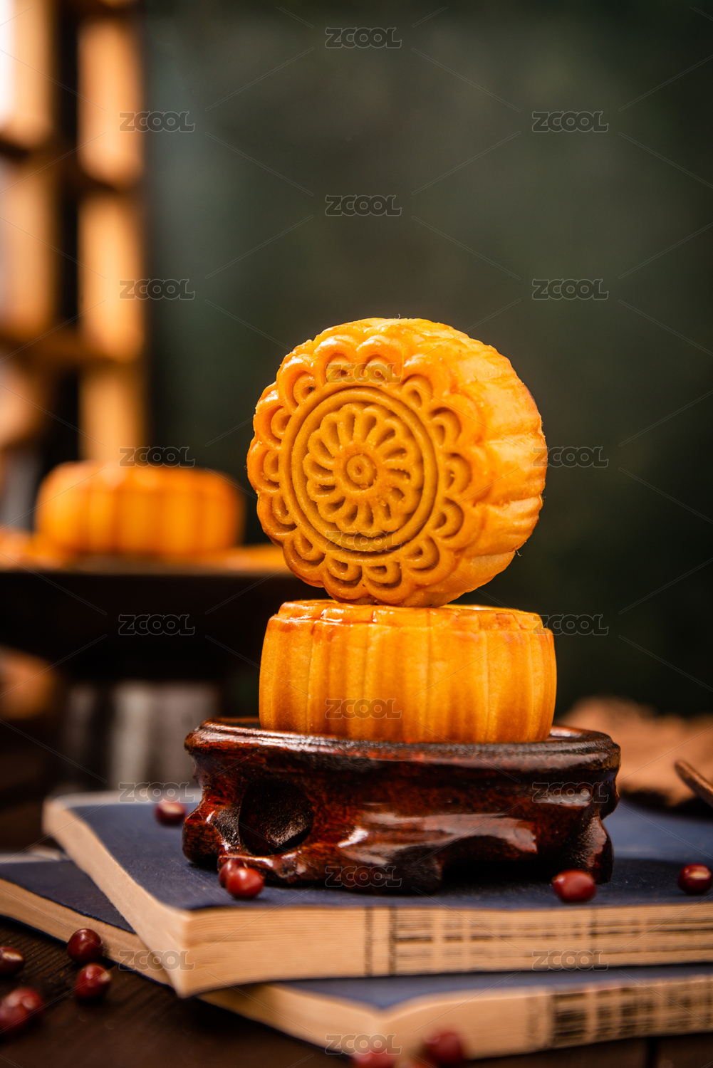 木板上的传统美食月饼