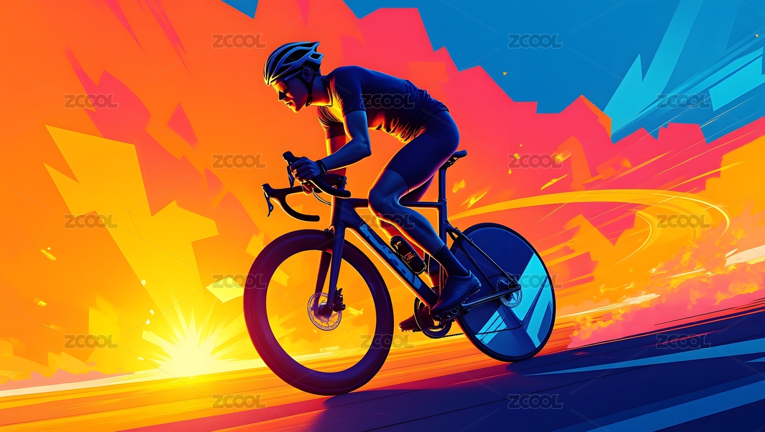 运动员骑行自行车体育运动插画彩绘背景