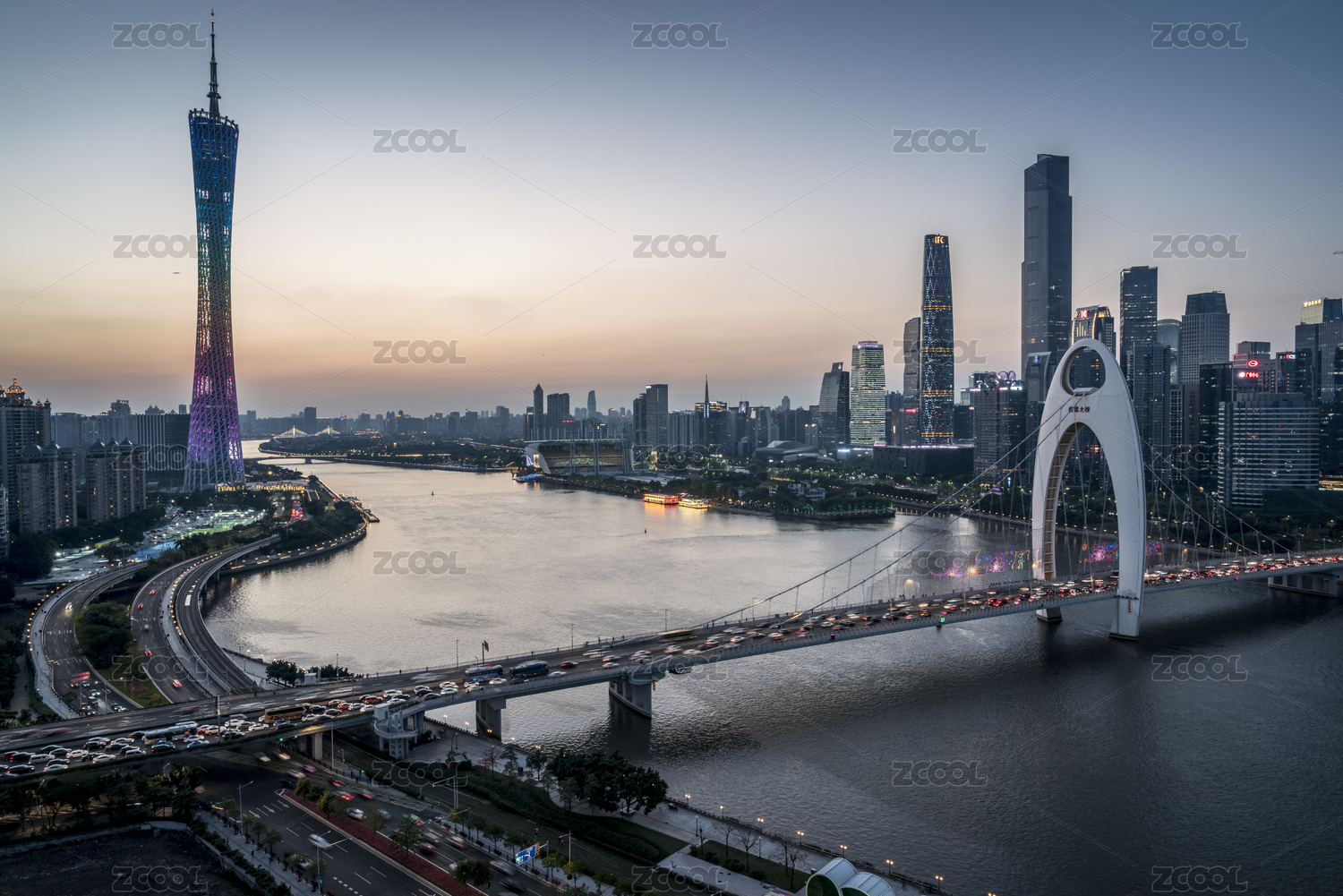 中国广东广州市天际线,广州塔、猎德大桥和CBD建筑白天下午城市风光