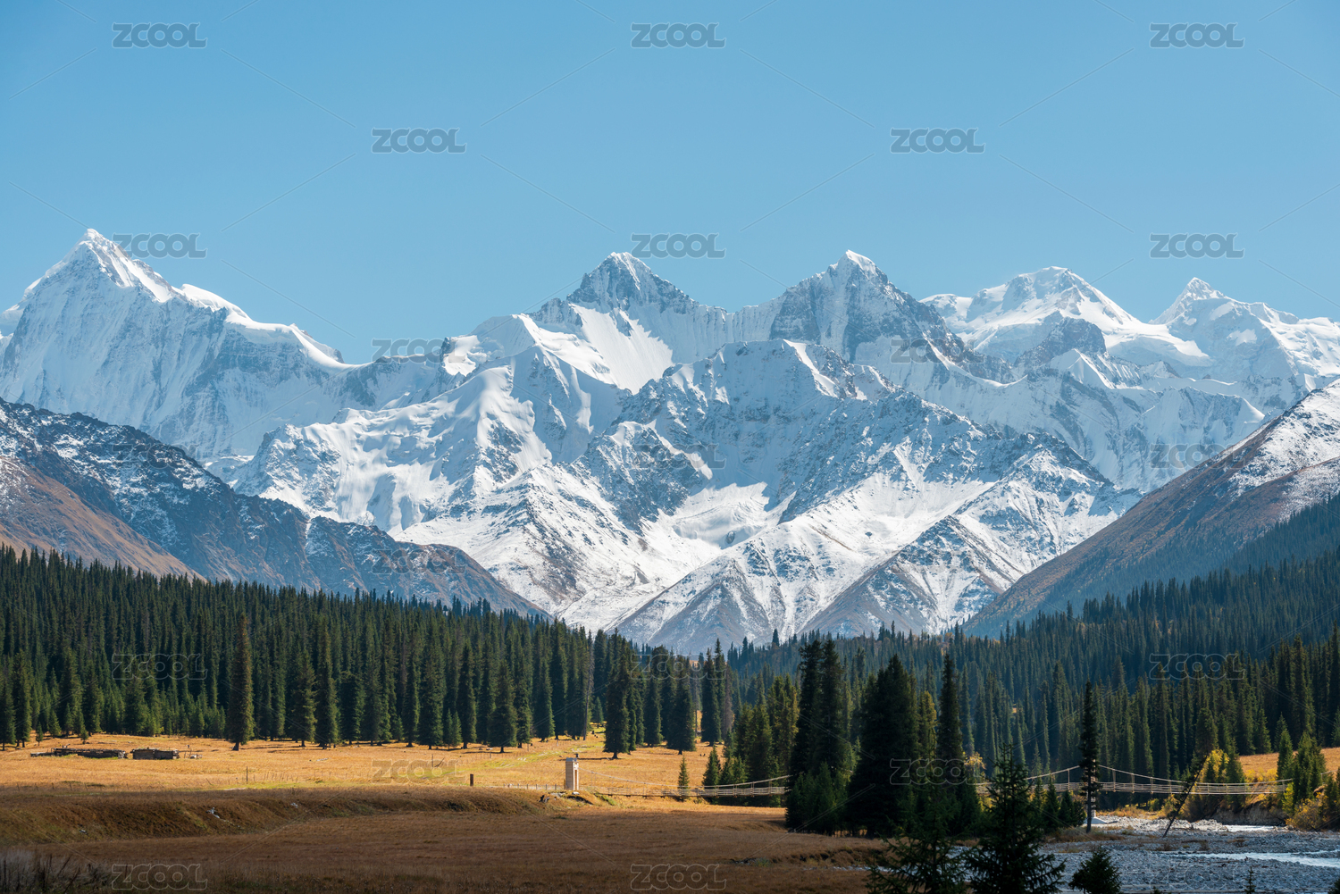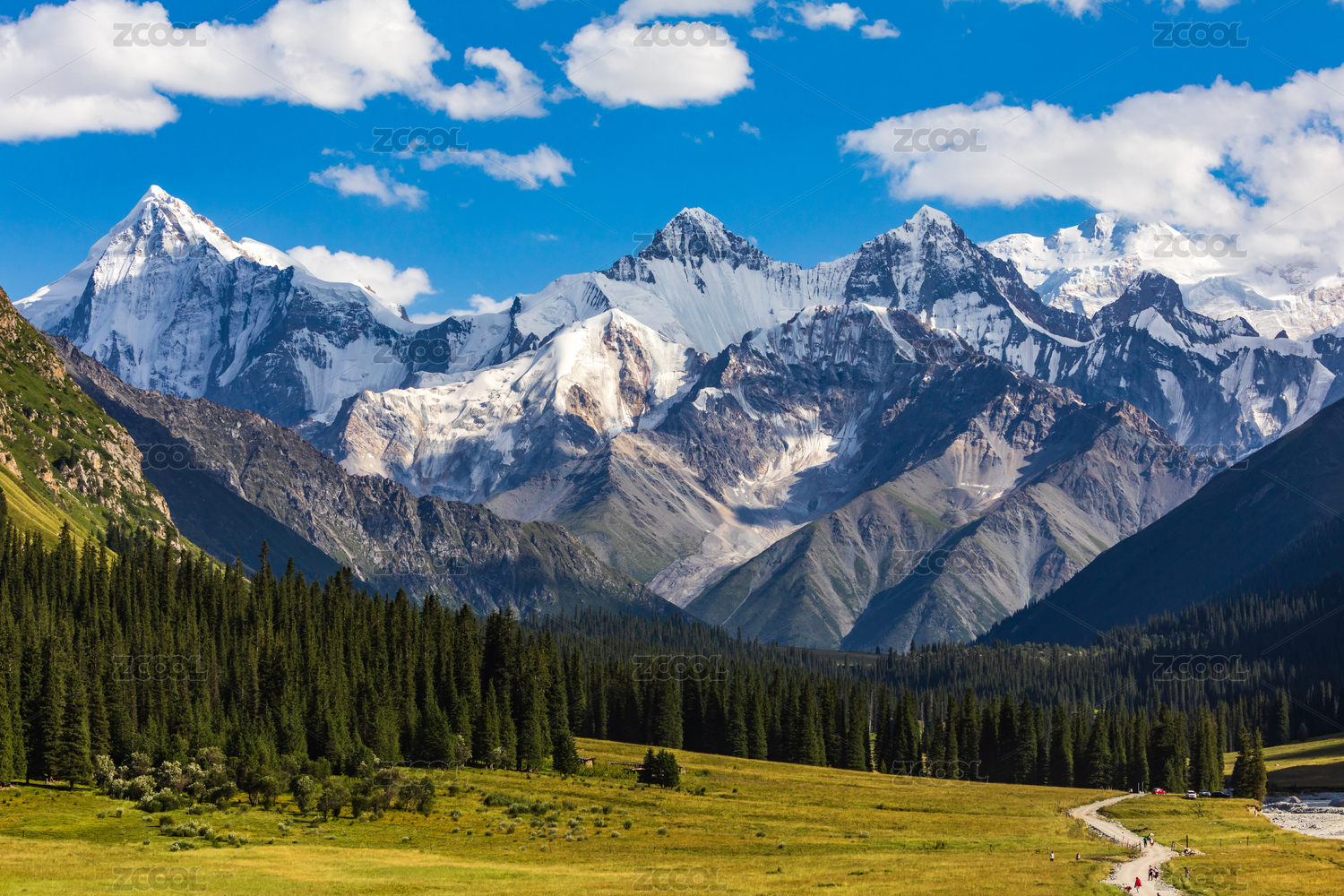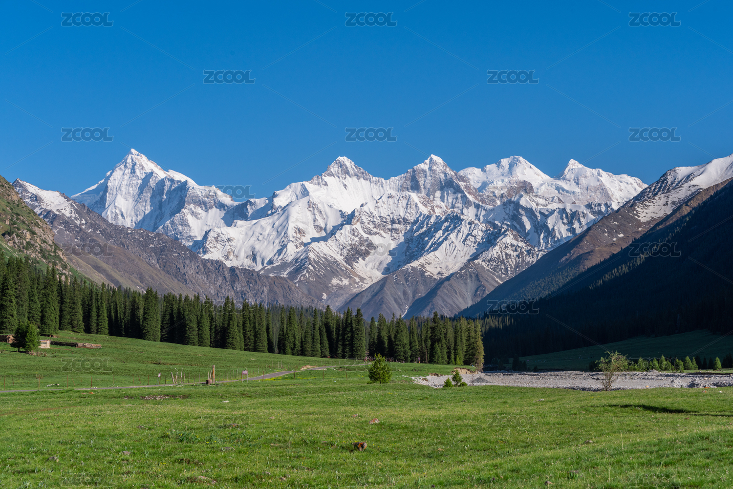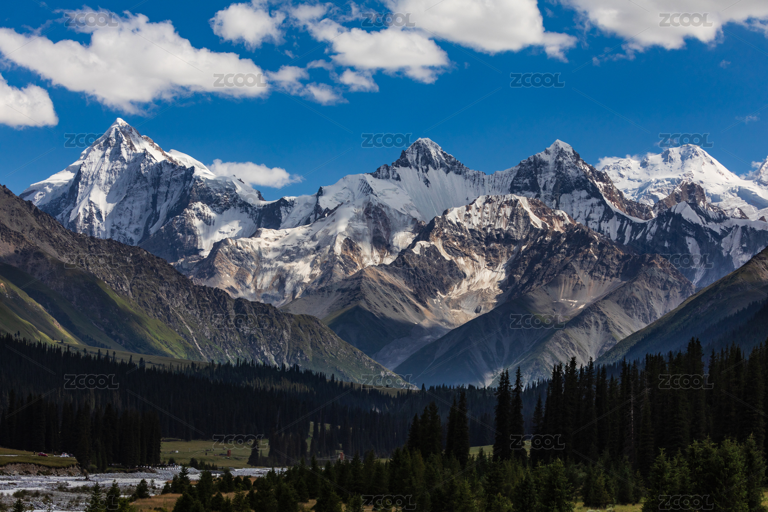 中国新疆伊犁昭苏夏塔景区木扎尔特峰雪山