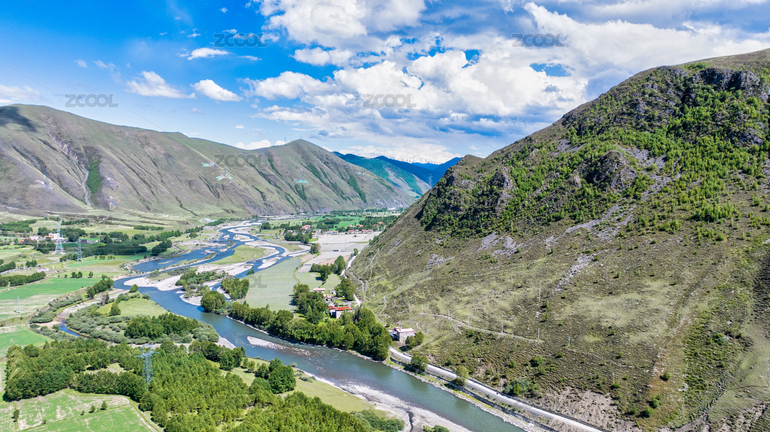 航拍中国理塘格聂镇夏季河谷草地自然风光