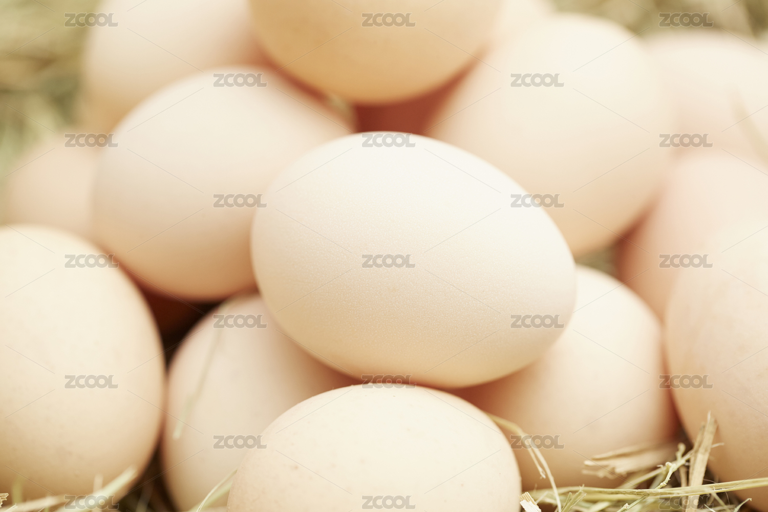 一堆新鲜的草鸡蛋