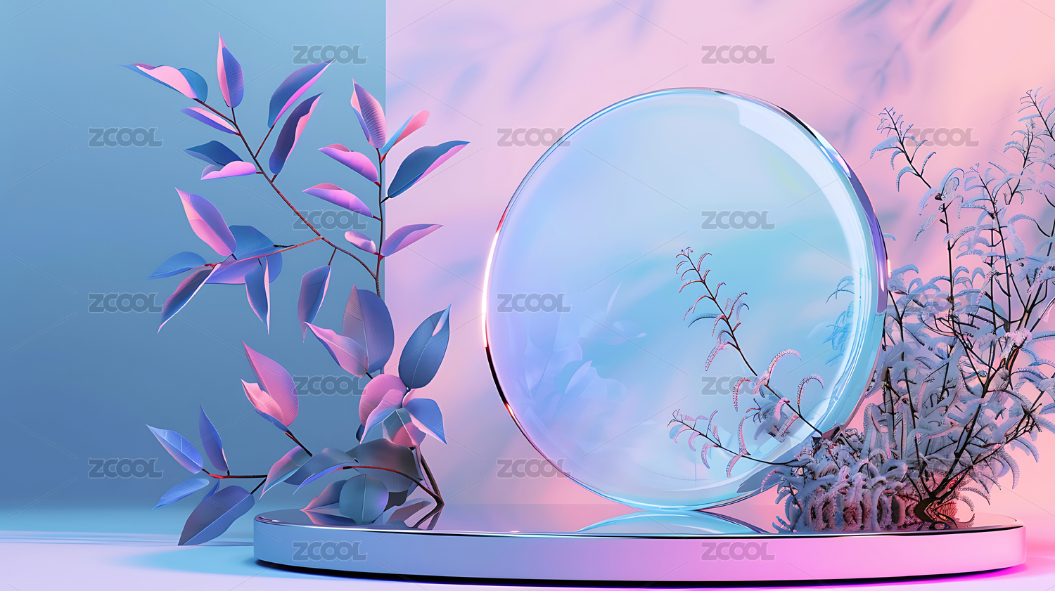 清透,透明,玻璃,植物,梦幻,3d,展台,电商,清新,花