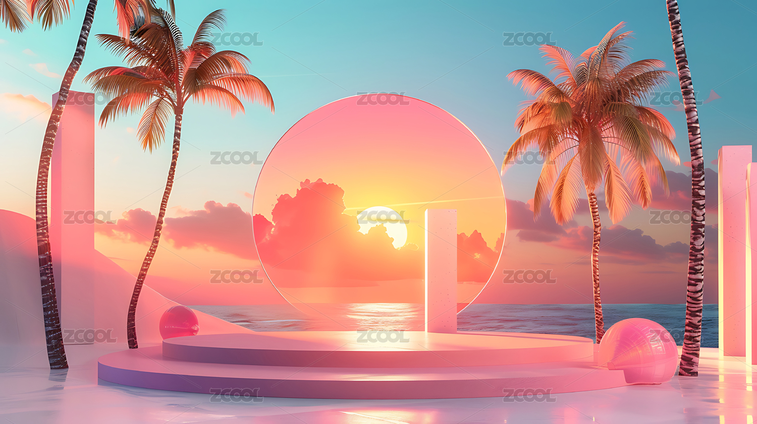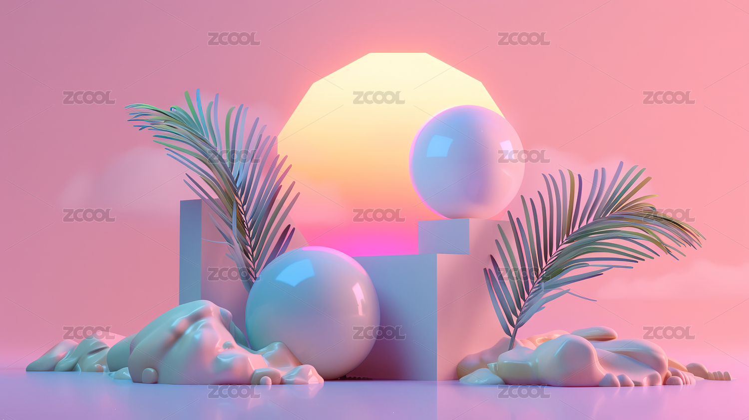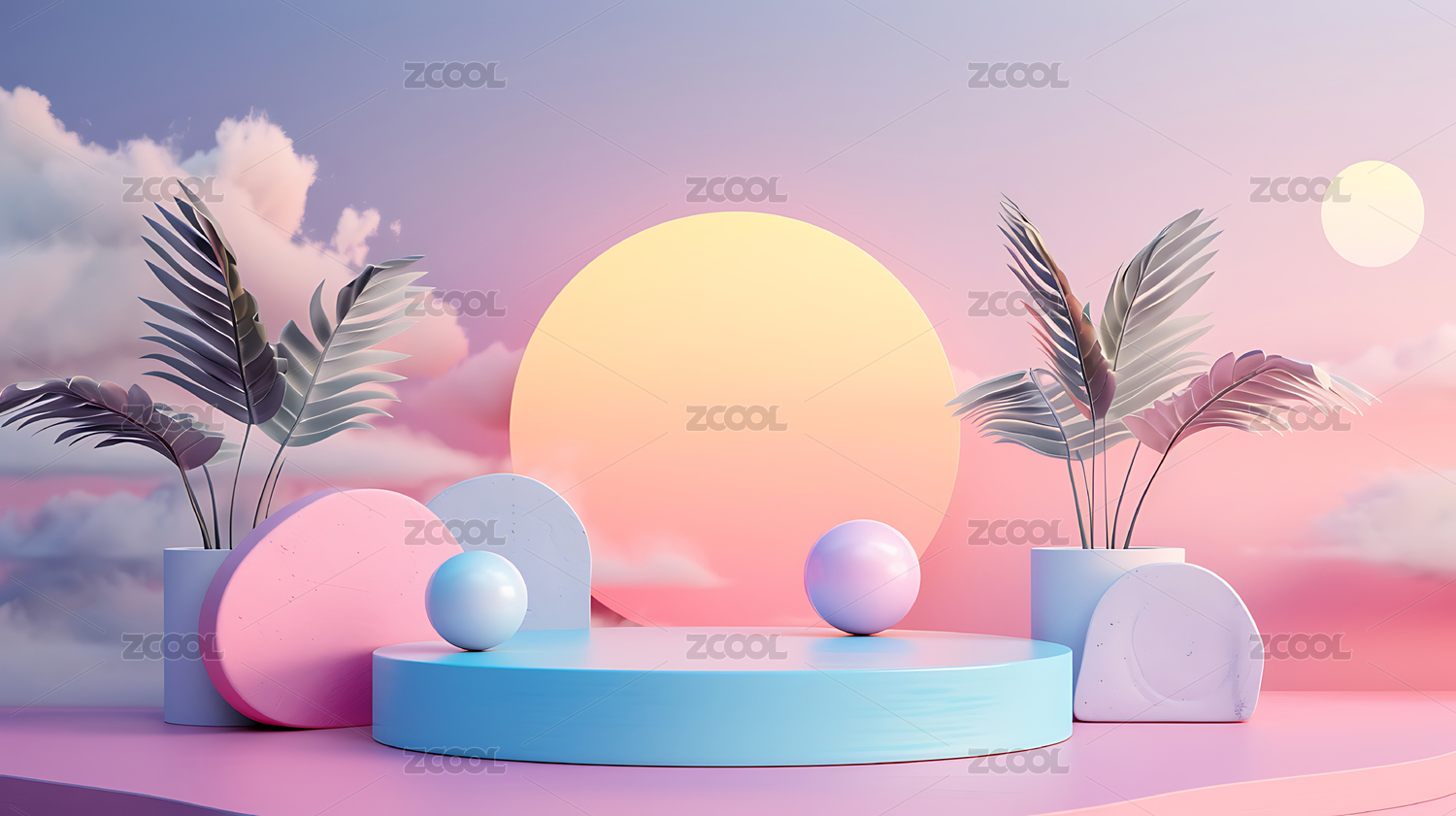 膨胀,夏日,植物,梦幻,卡通,3d,展台,电商,清新