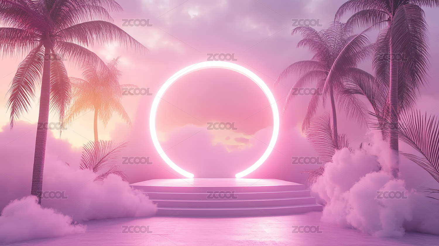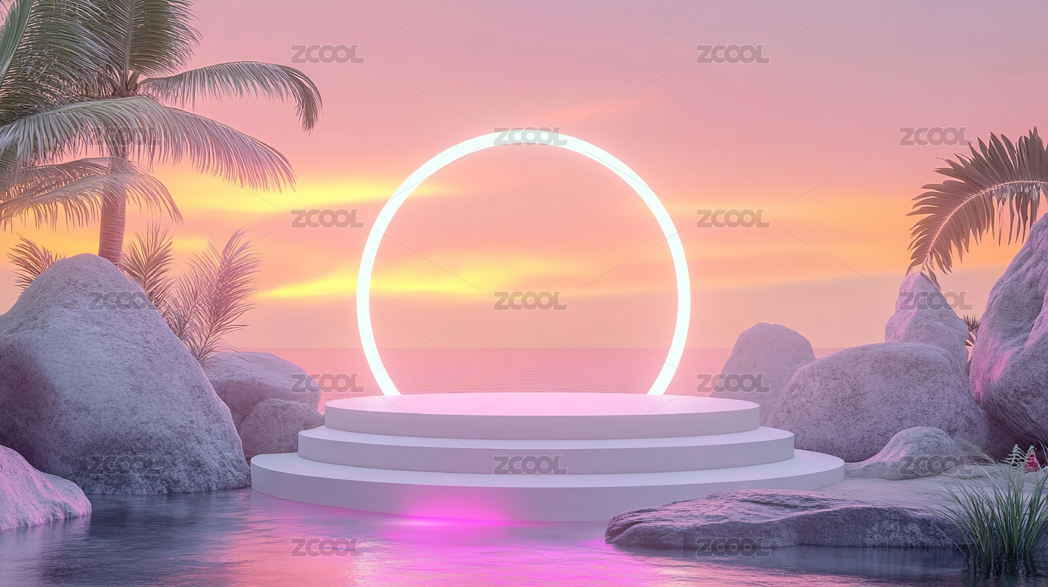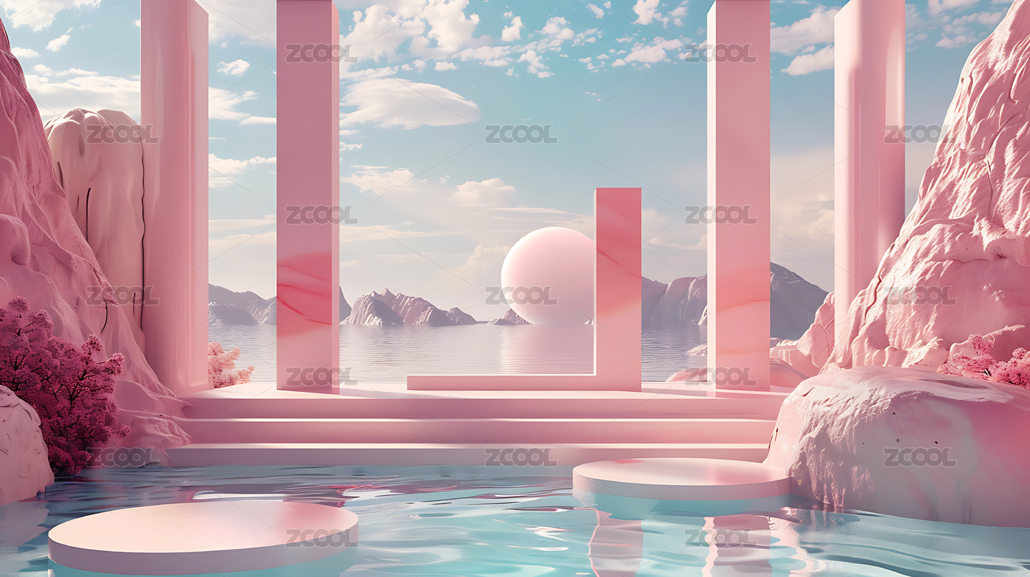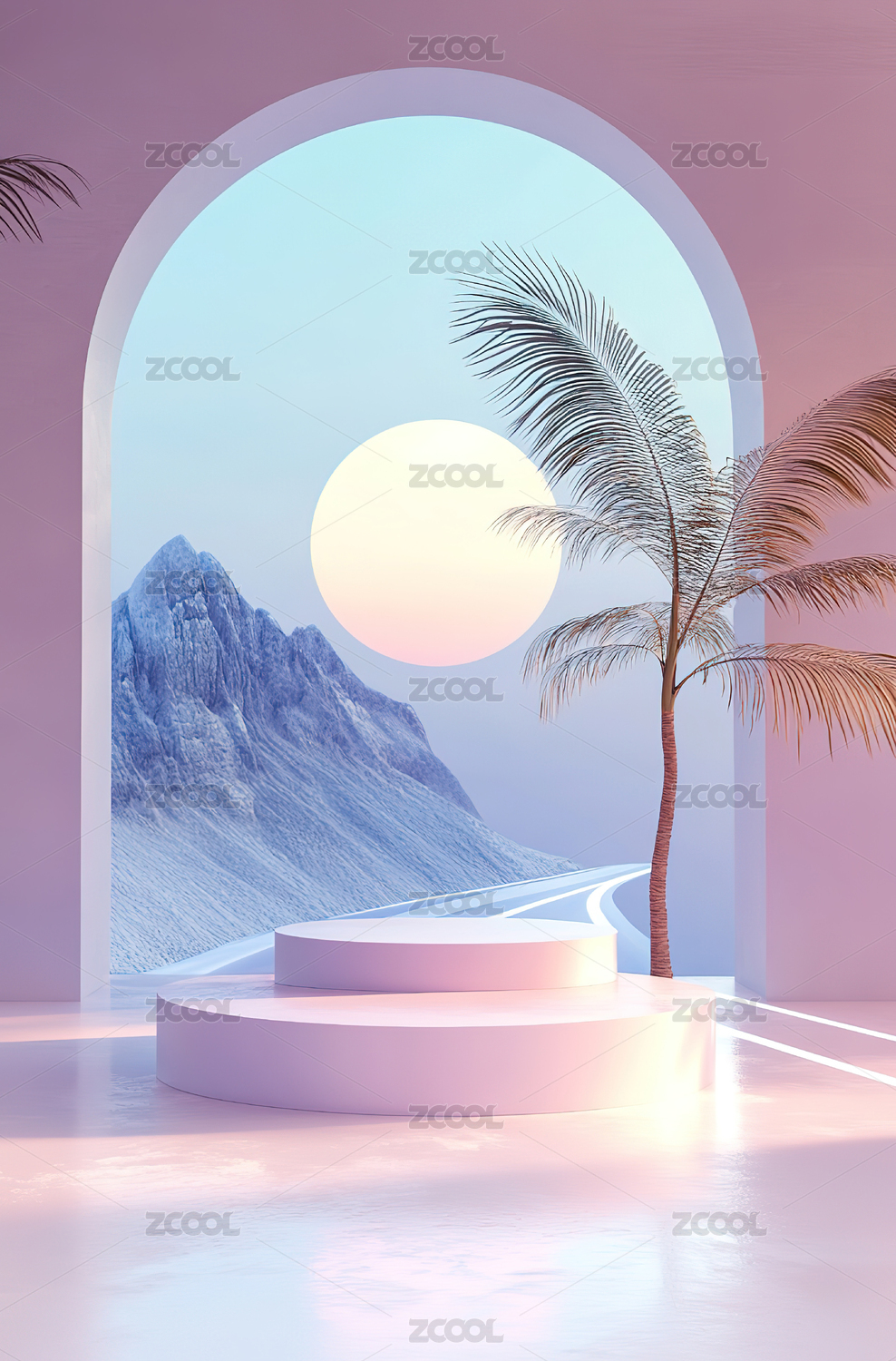 膨胀,夏日,植物,梦幻,卡通,3d,展台,电商,清新