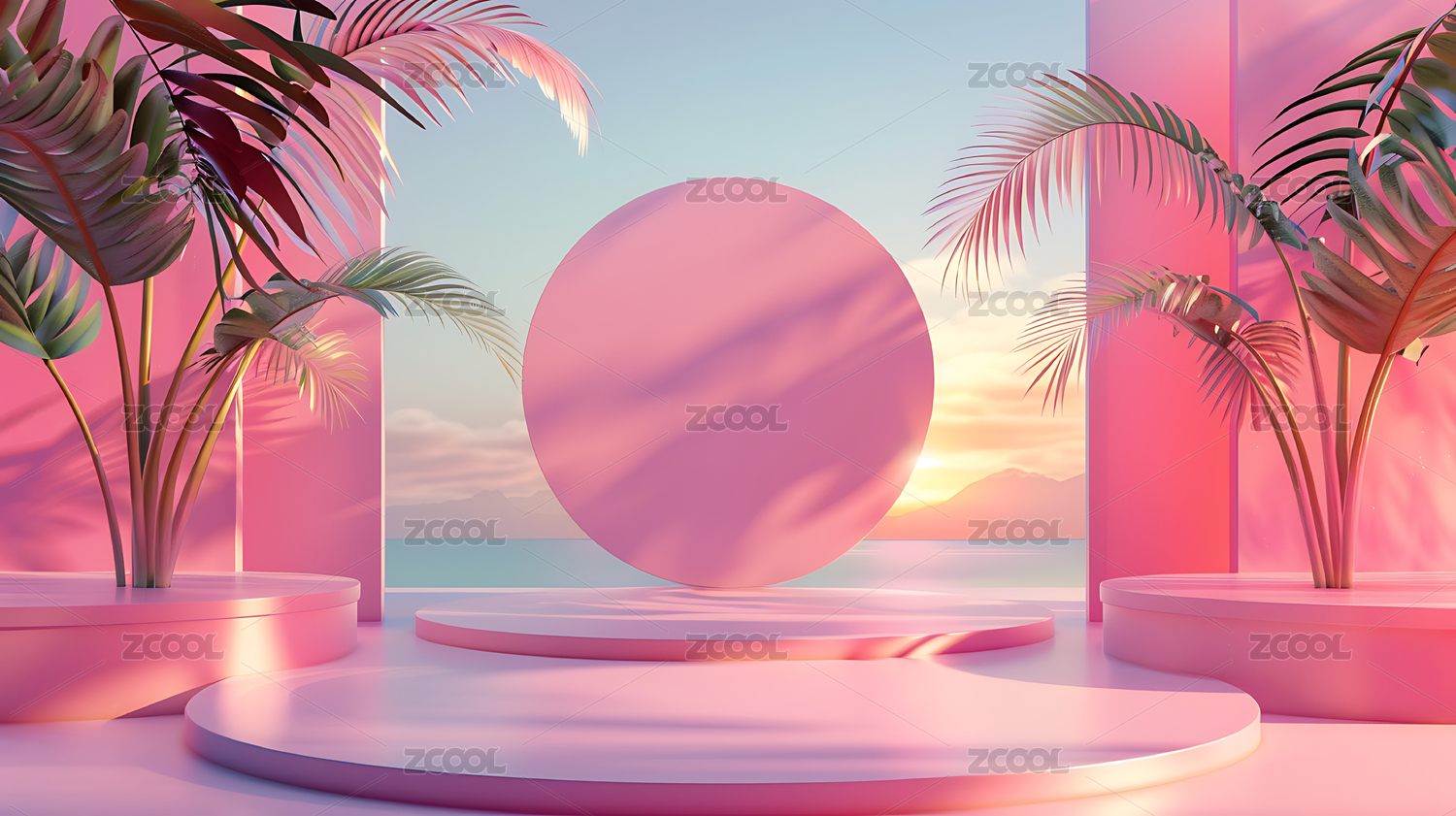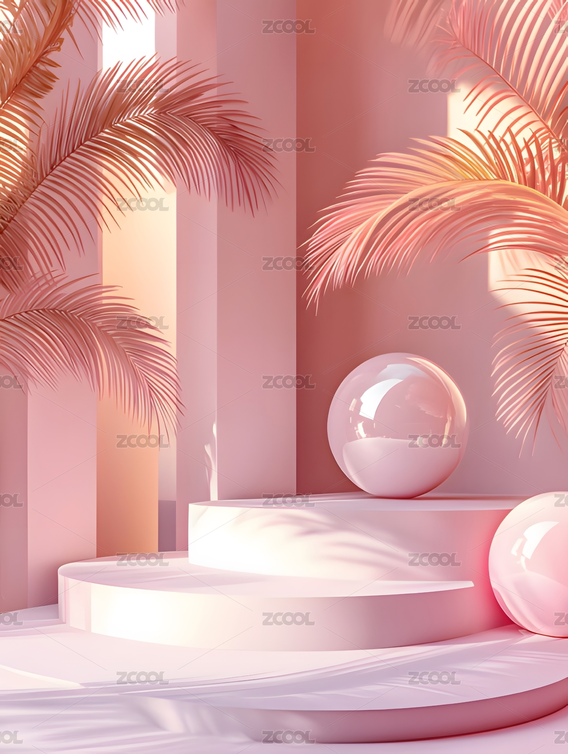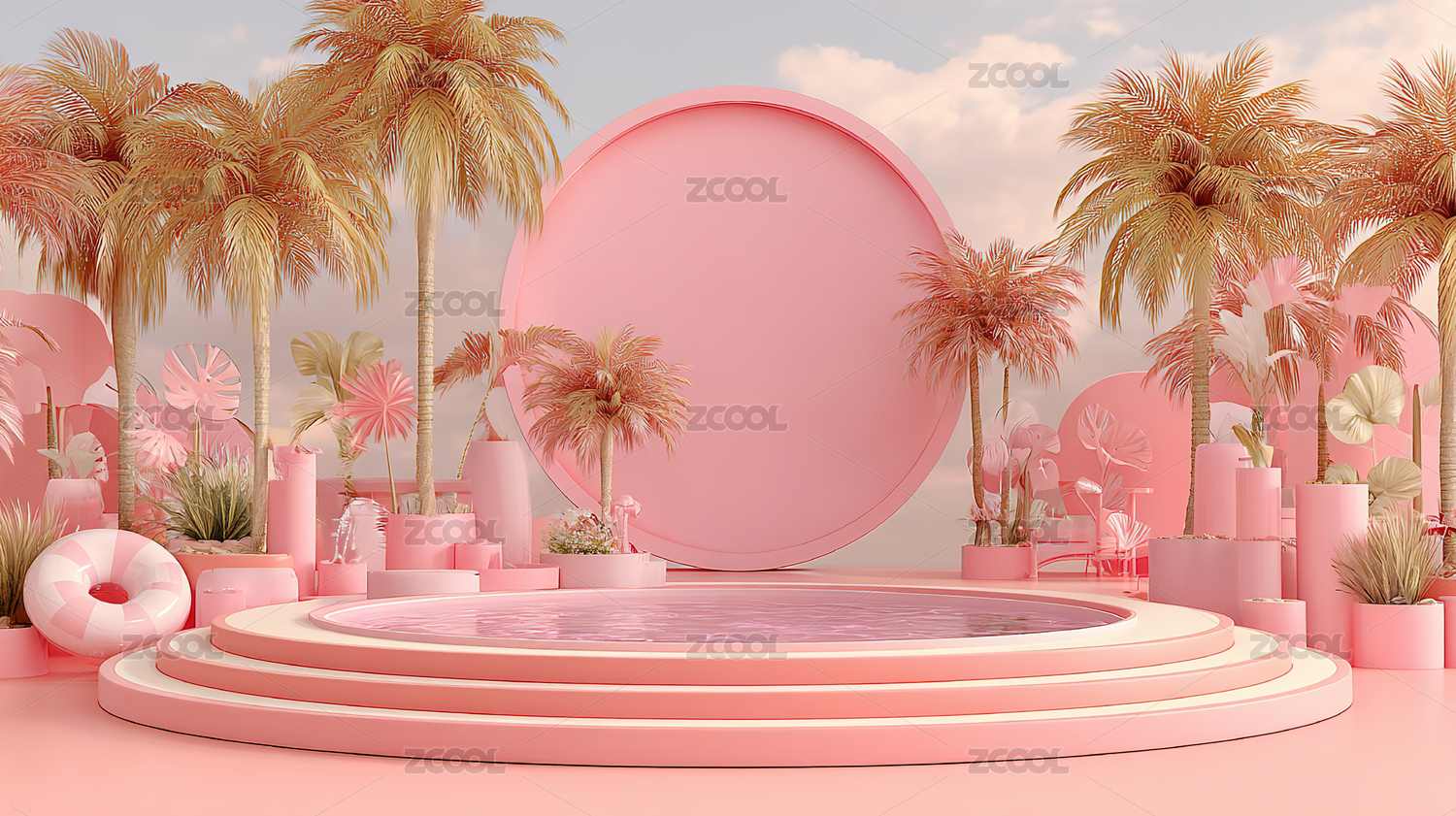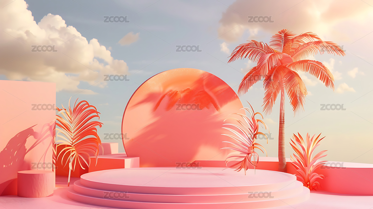 夏日,植物,梦幻,3d,展台,电商,产品,清新,花,设计
