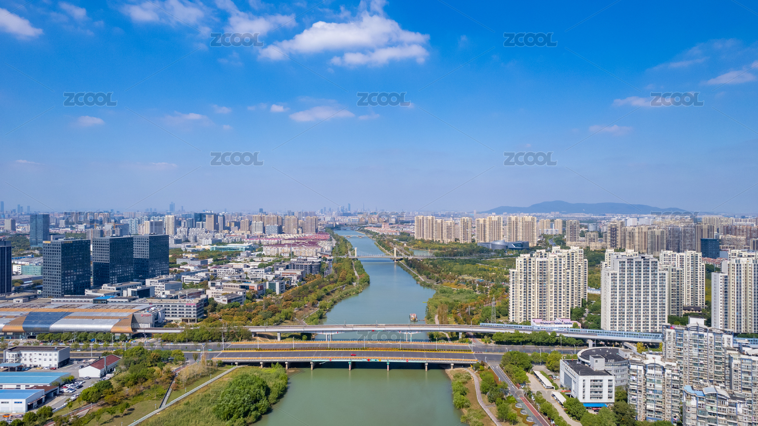航拍河南平顶山湛河乌江河口公园生态水系