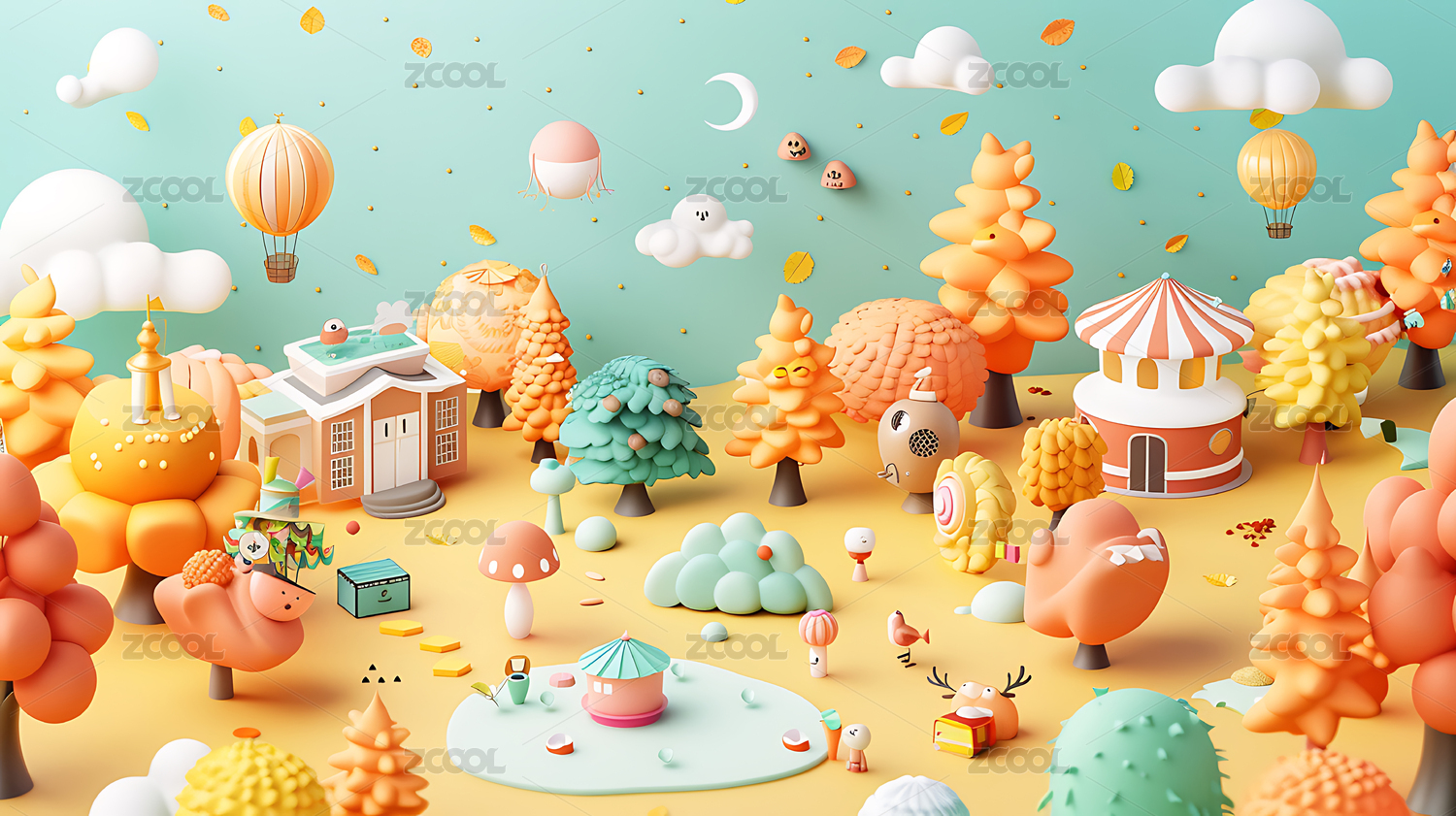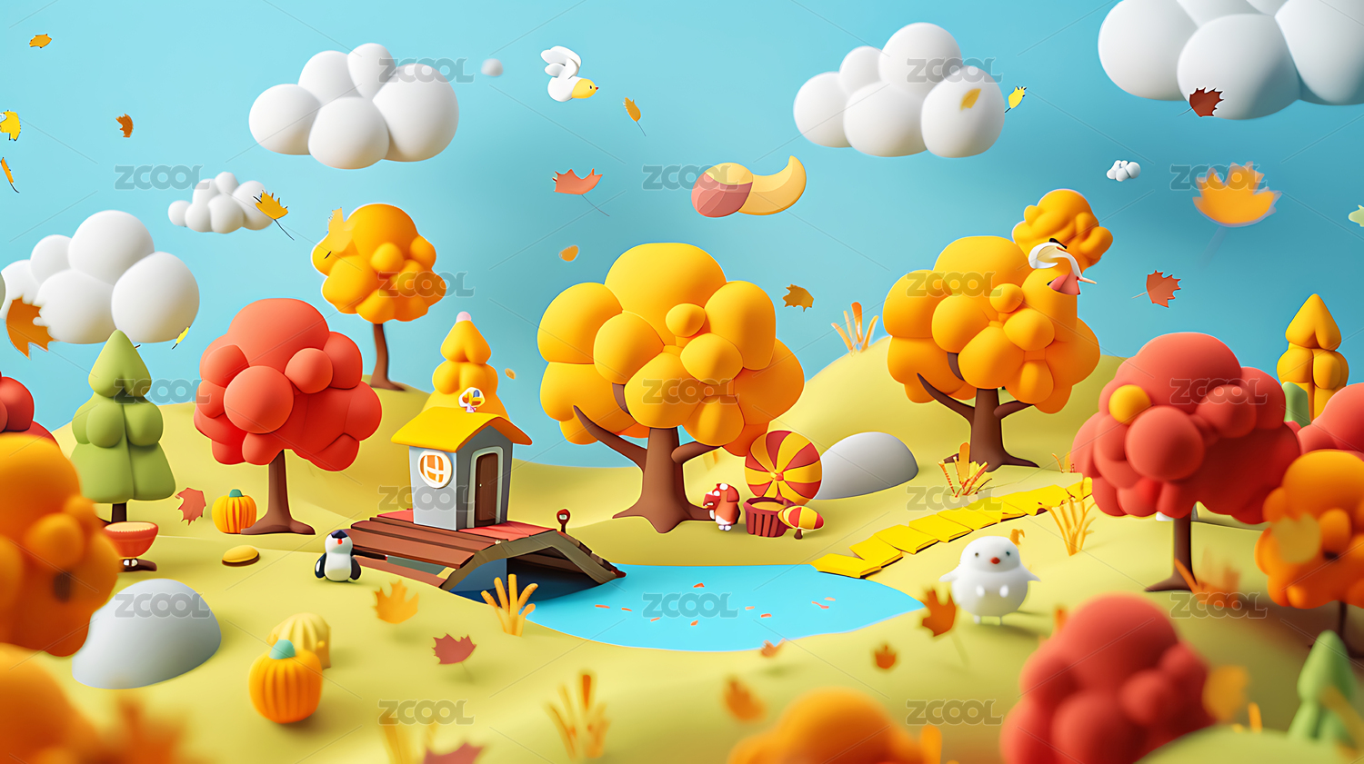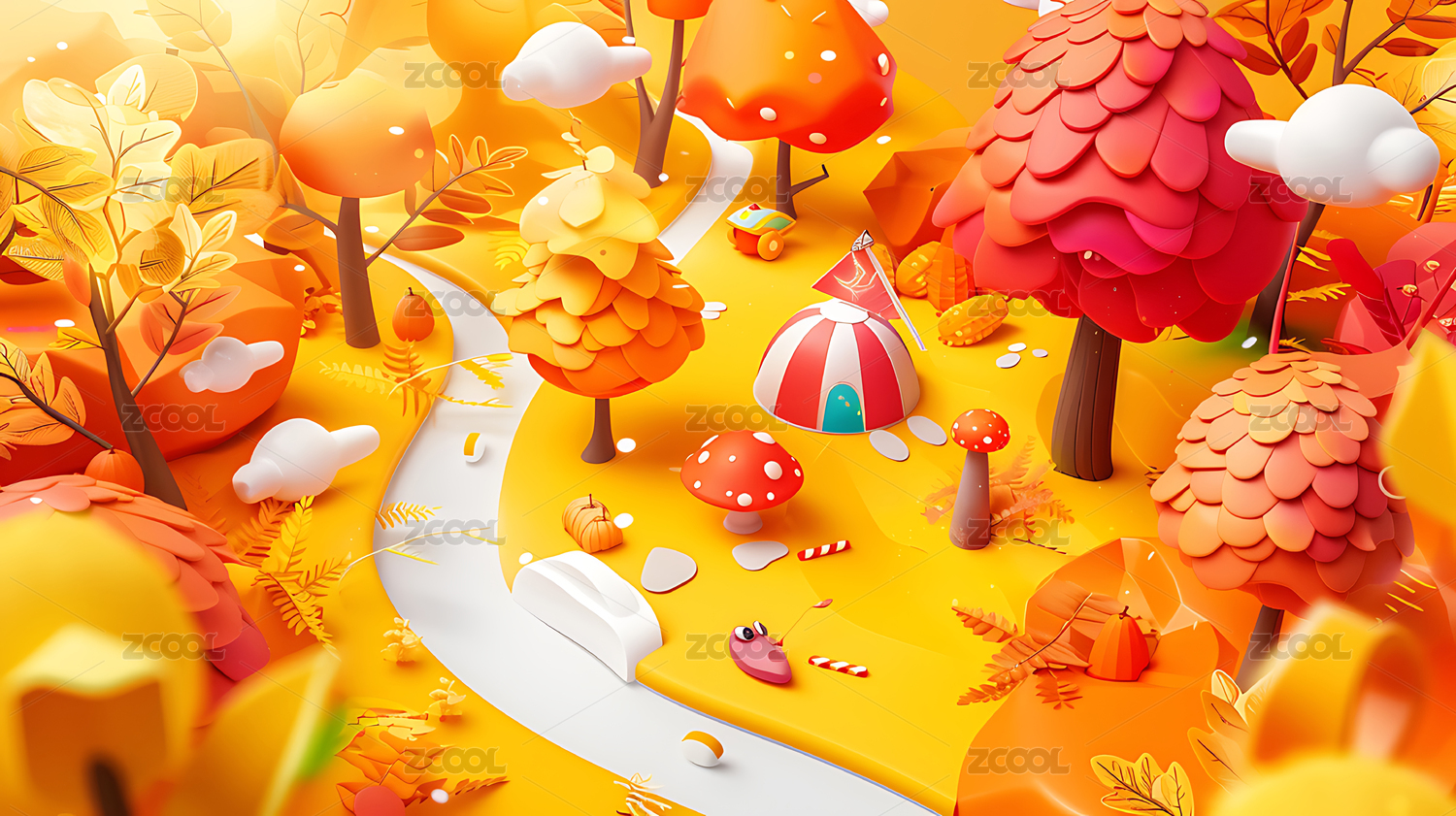 秋天,出游,户外,卡通,清新,可爱,背景,露营,壁纸,自然