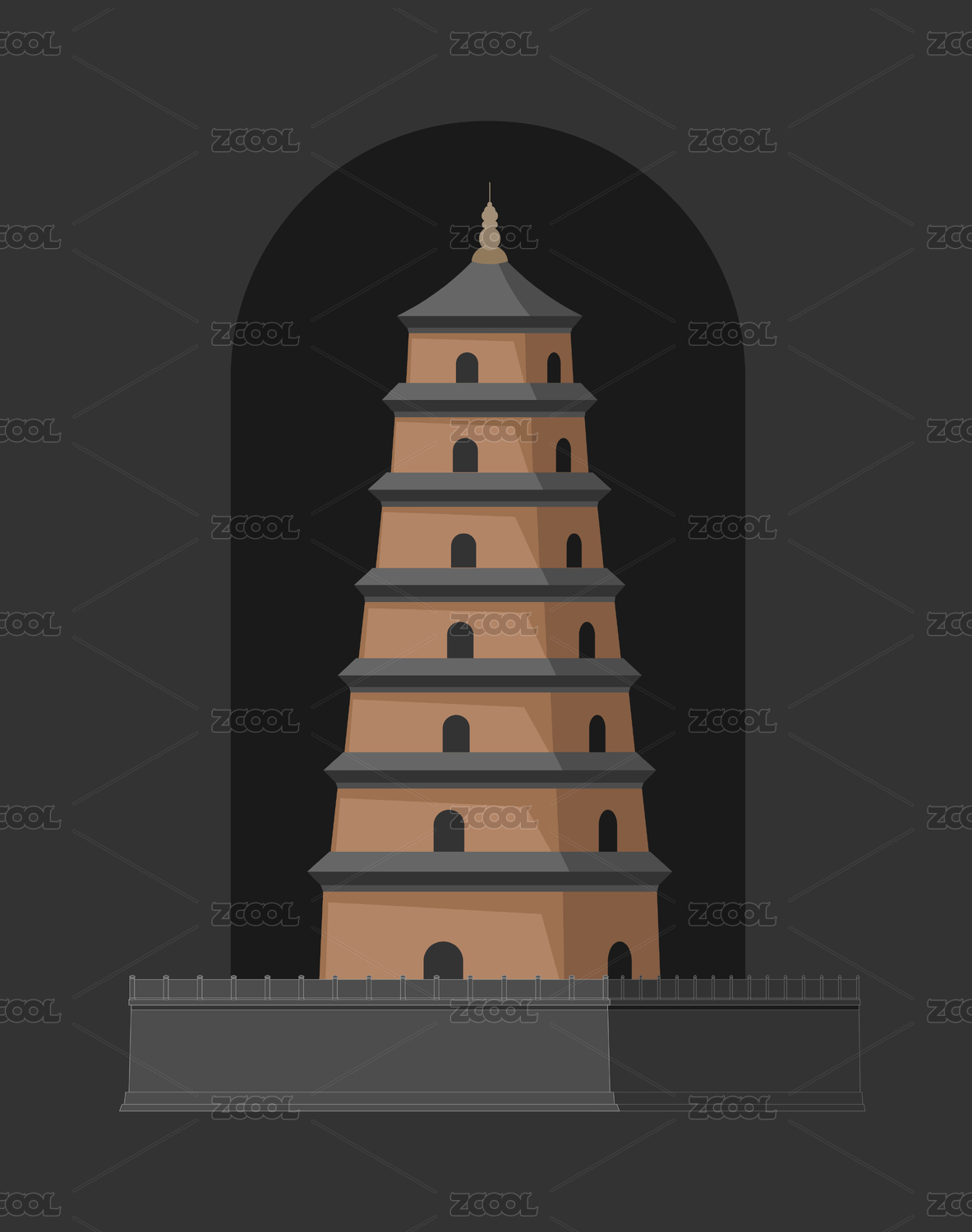 西安大雁塔城市地标建筑元素