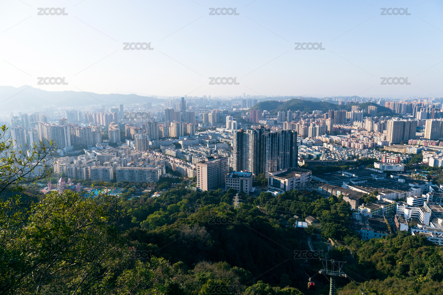 笔架山公园山顶远眺深圳城市风光鸟瞰图