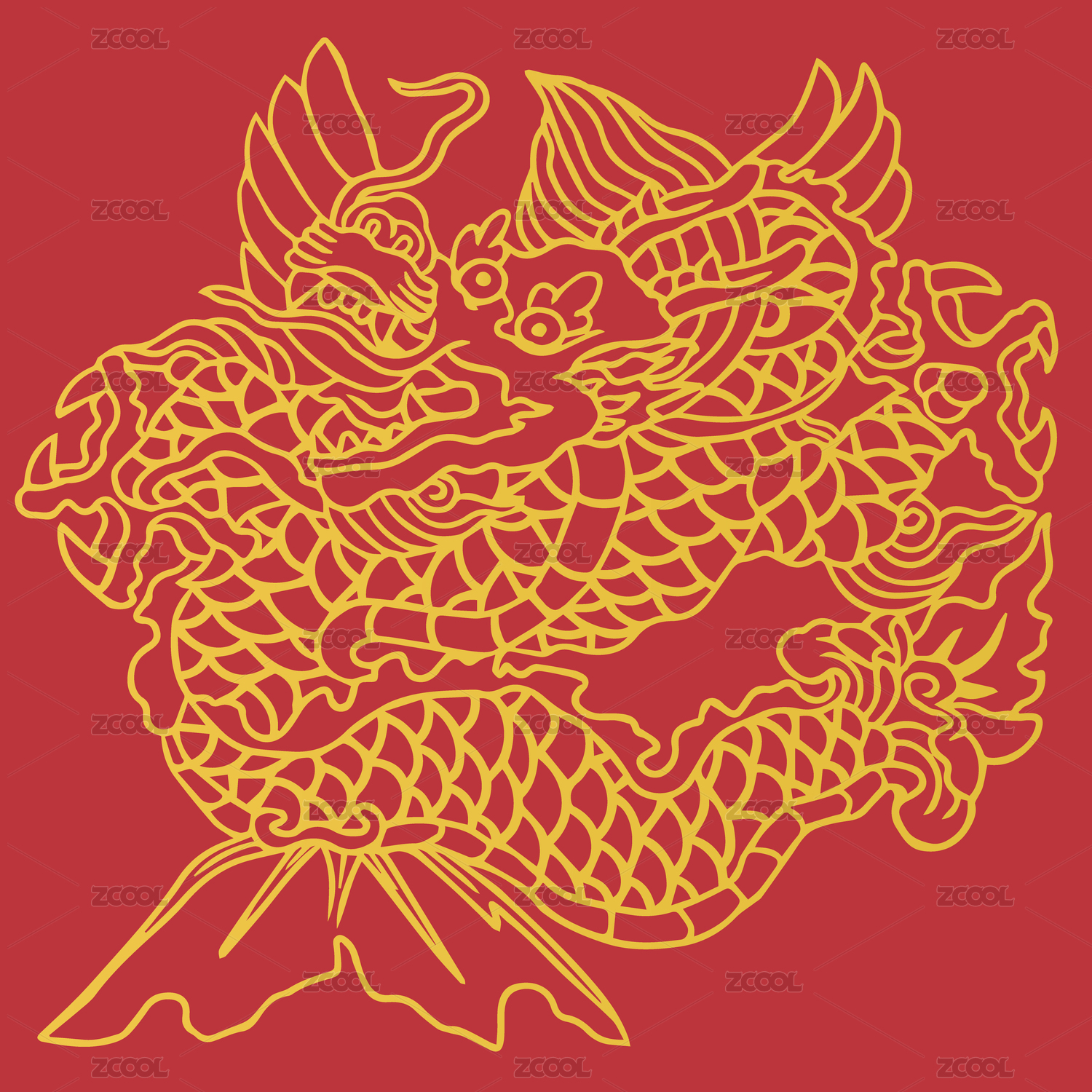 中国传统龙插画图案元素