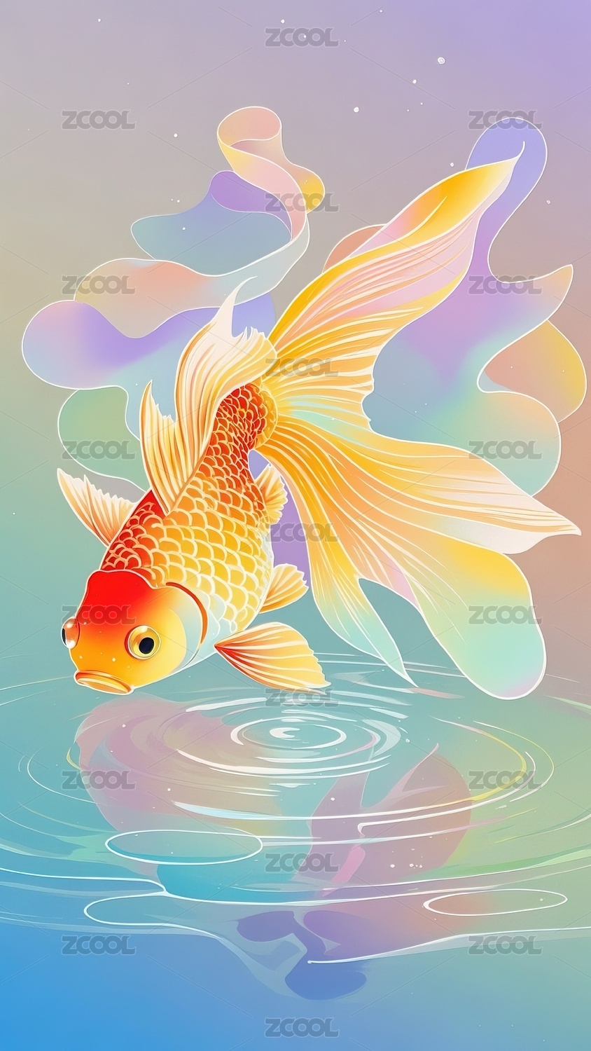 海浪,金鱼,鱼,复古,水纹,浪花,浪,海水,海,艺术