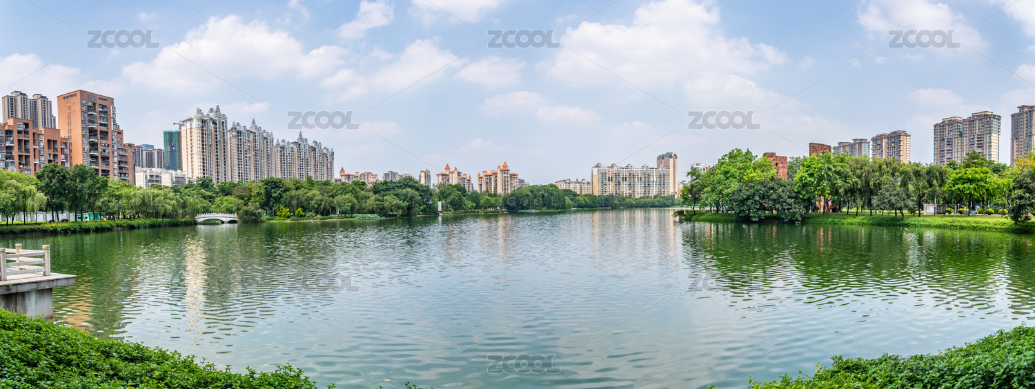 中国广东省佛山市禅城区亚洲艺术公园湖景