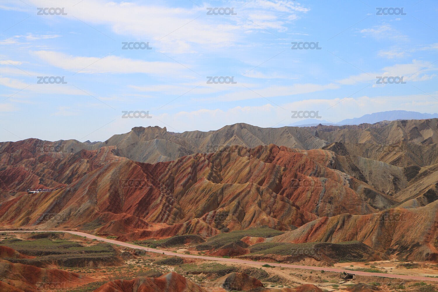 蓝天白云下的甘肃兰州树屏丹霞地貌