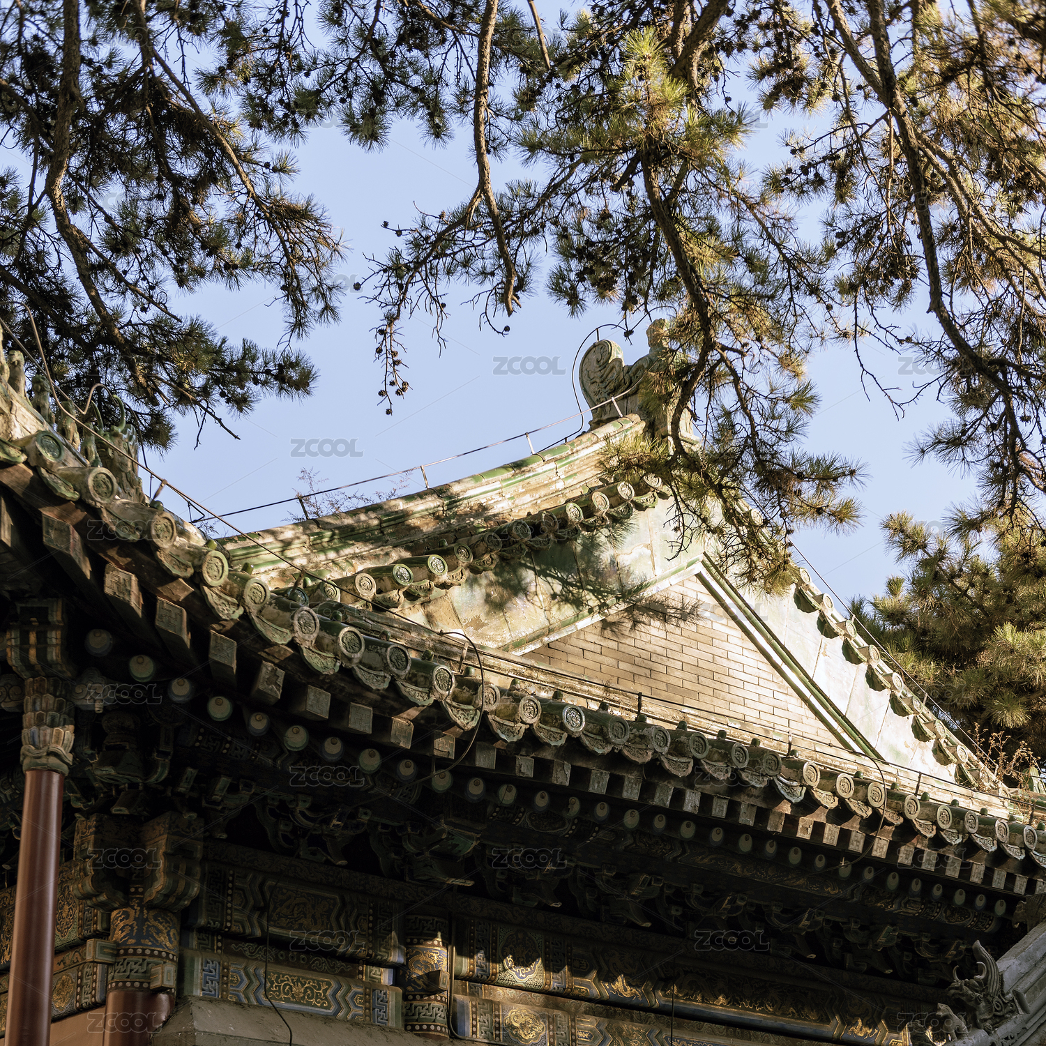 冬季蓝天下北京国子监孔庙寺庙屋檐特写