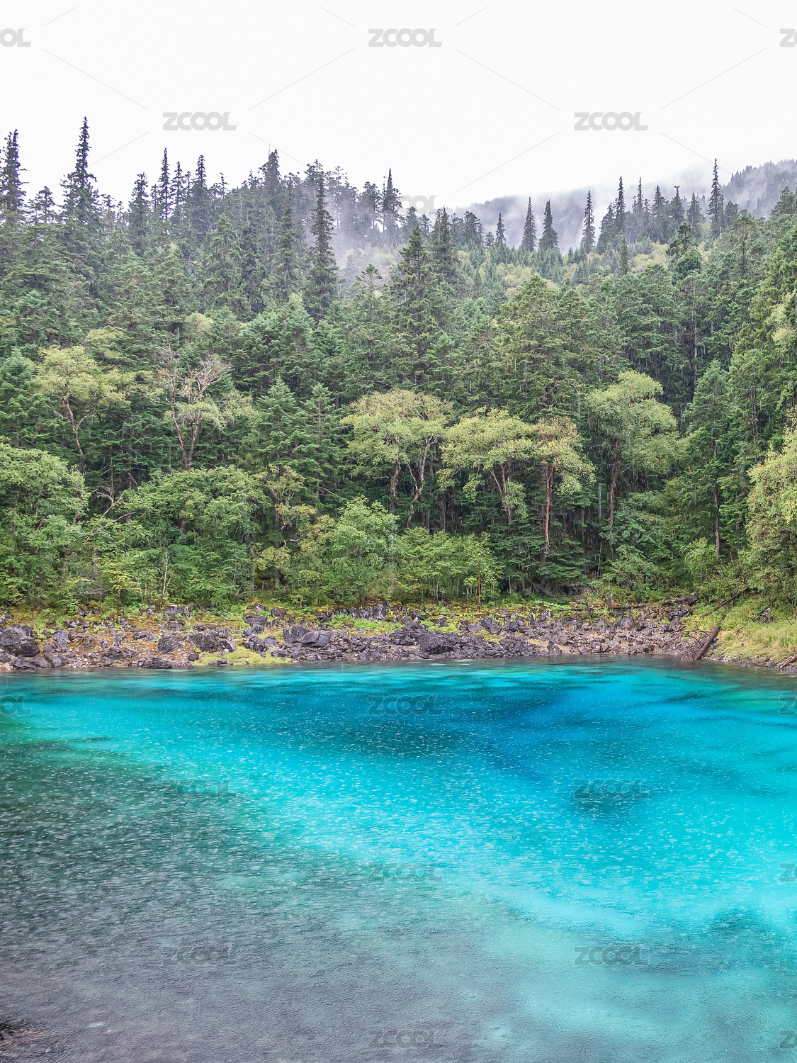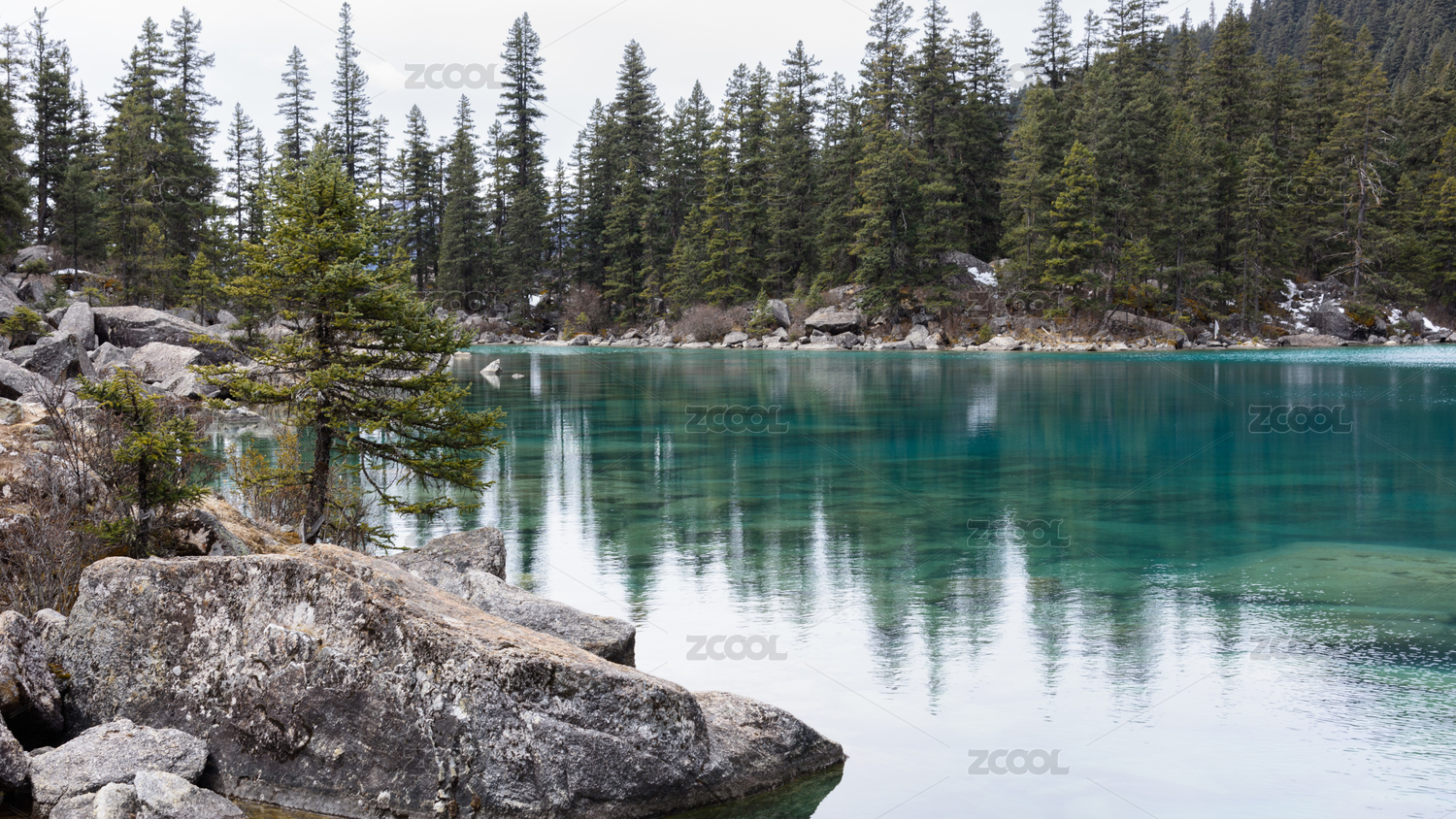 中国四川甘孜措普沟风景区翡翠绿色的湖泊