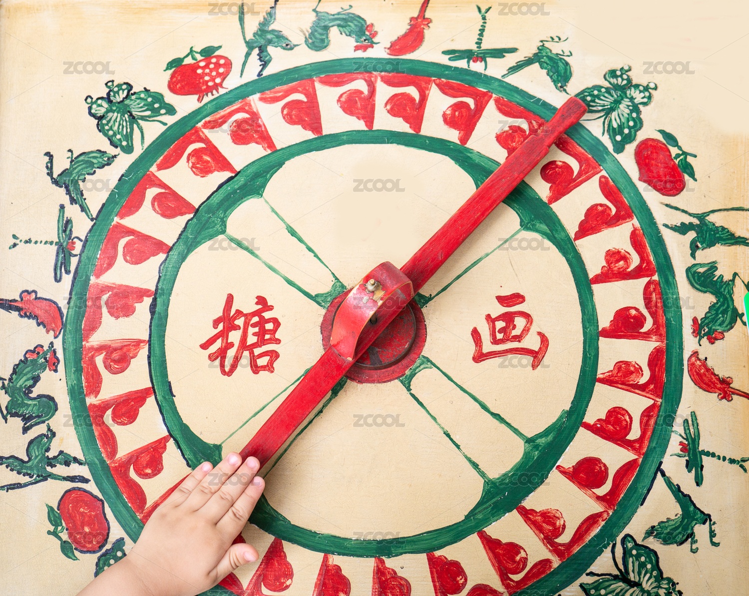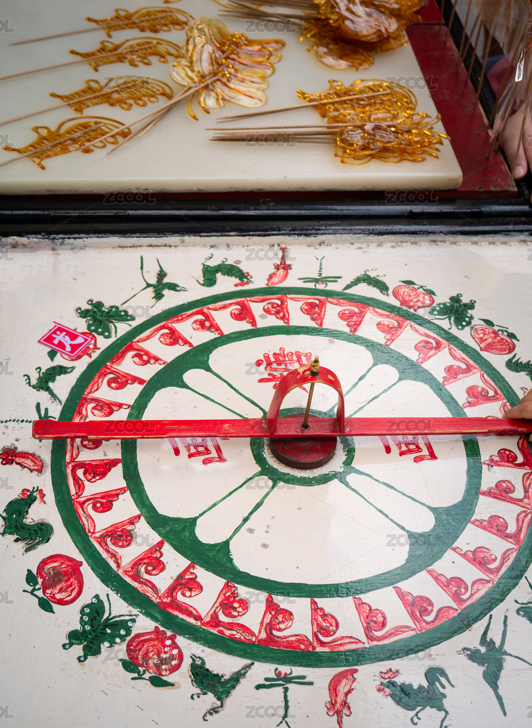 中国民间传统文化糖画木制手绘画板转盘上正在转糖画的小孩的手