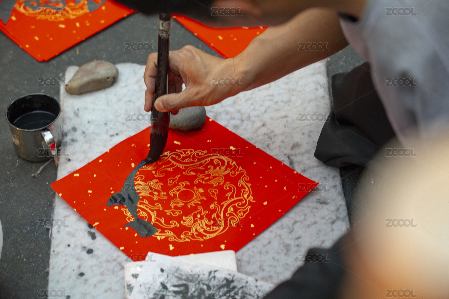 中国人过春节时都有人销售着自己手写的春联