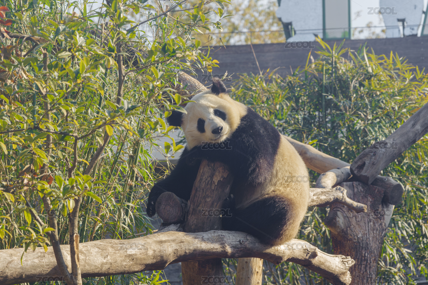 成都大熊猫繁育研究基地里悠闲休息可爱熊猫