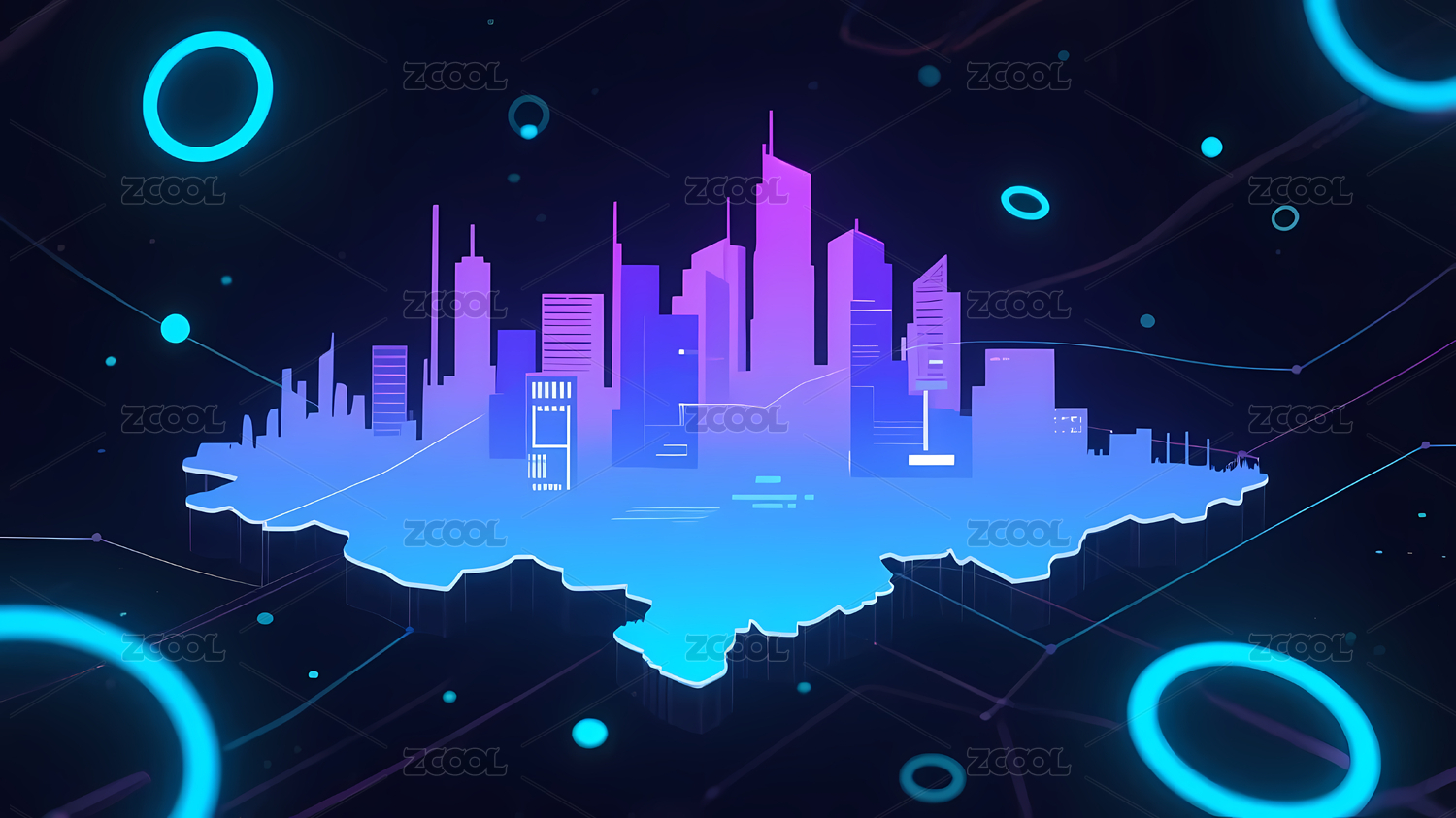 上海城市科技未来赛博朋克扁平渐变矢量插画