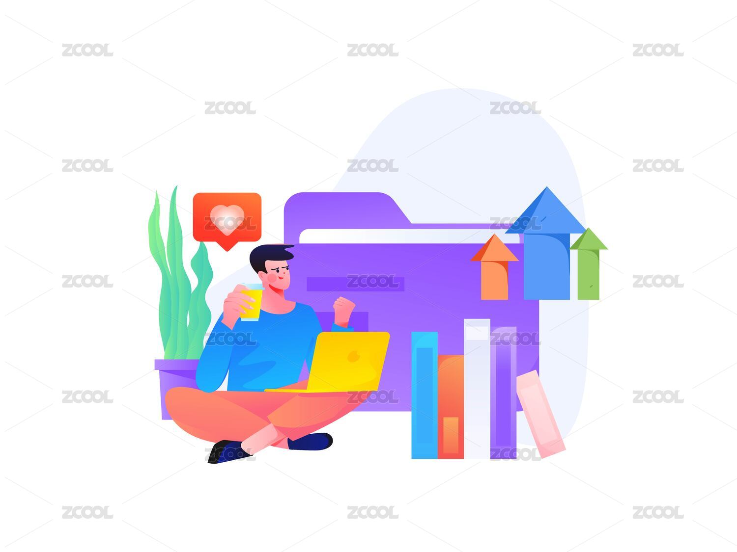 正在上班的男子,扁平矢量人物场景创意概念插画