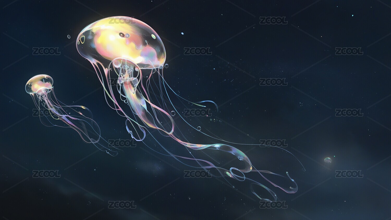 唯美梦幻水母插画