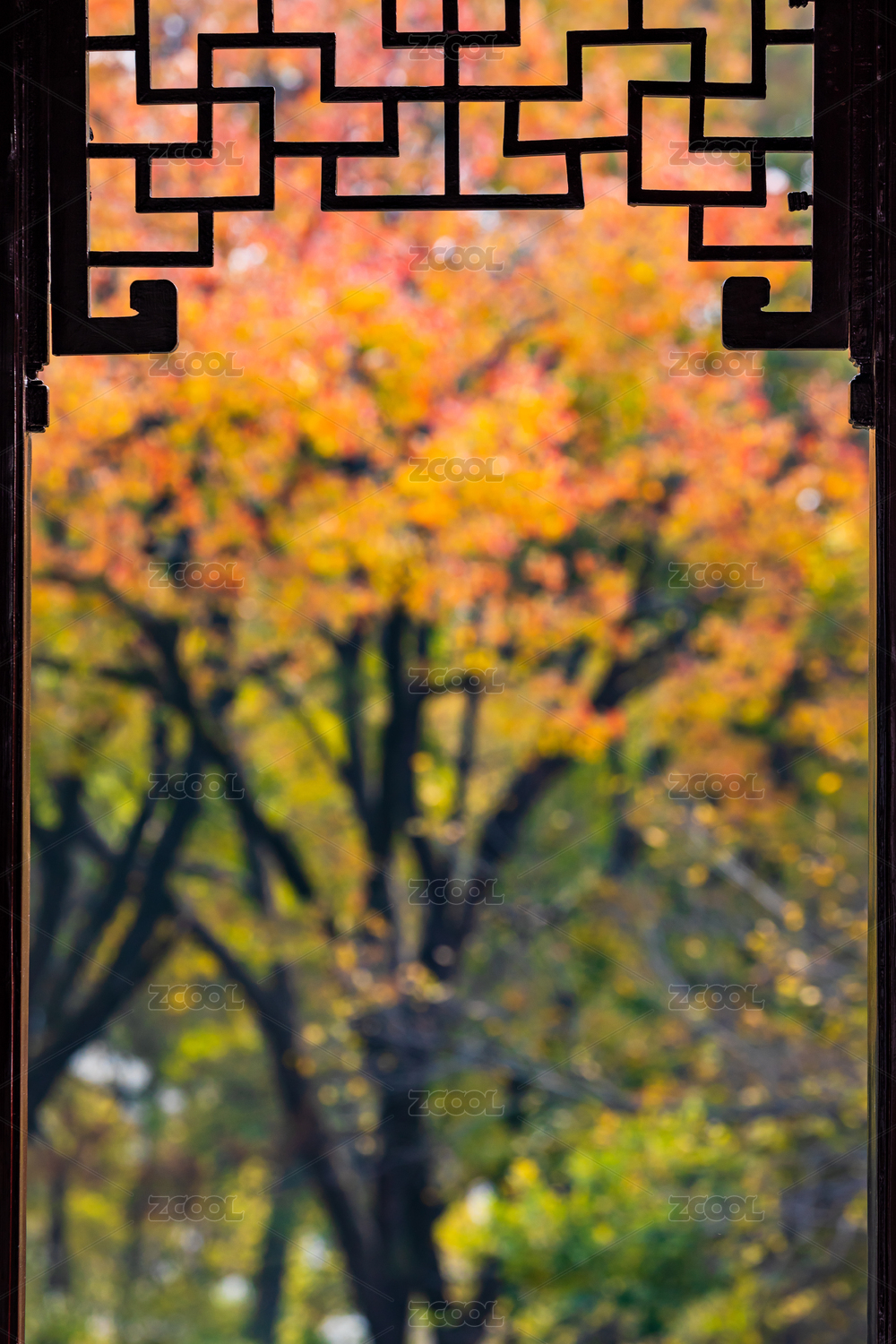 中国江苏省扬州市瘦西湖风景区内建筑物的木质花窗