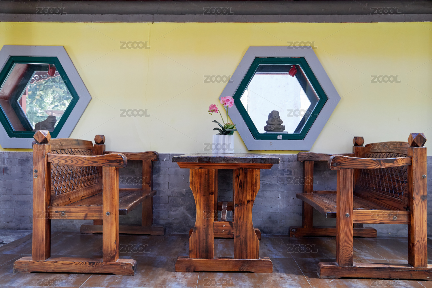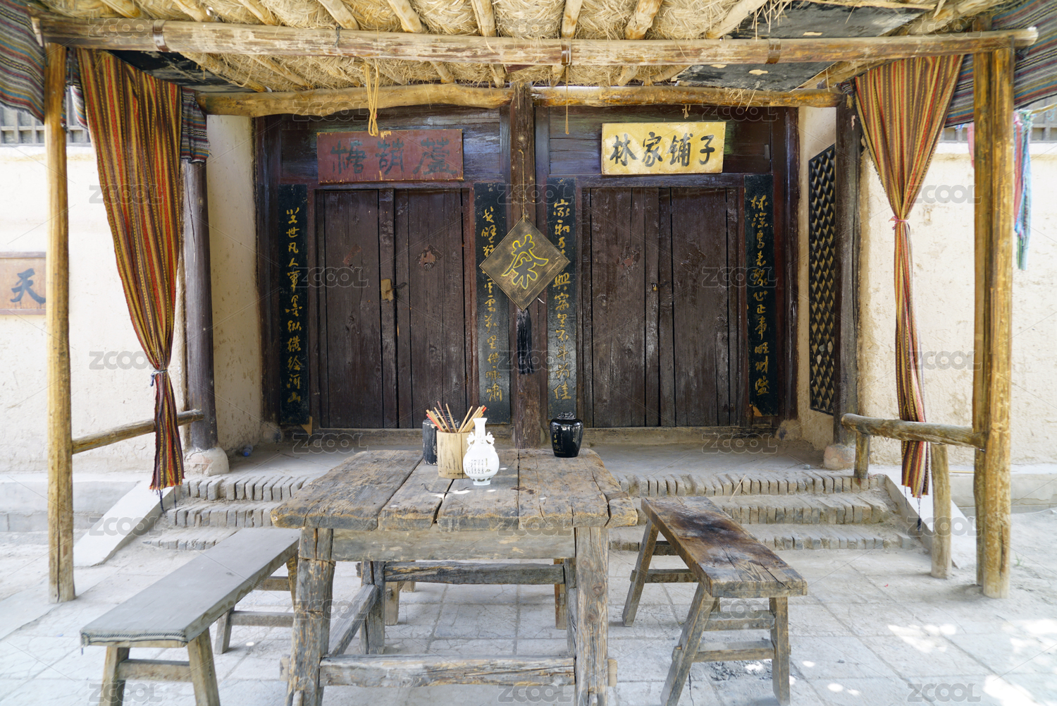 山东省惠民县魏集镇魏氏庄园内放置瓷器的半月桌