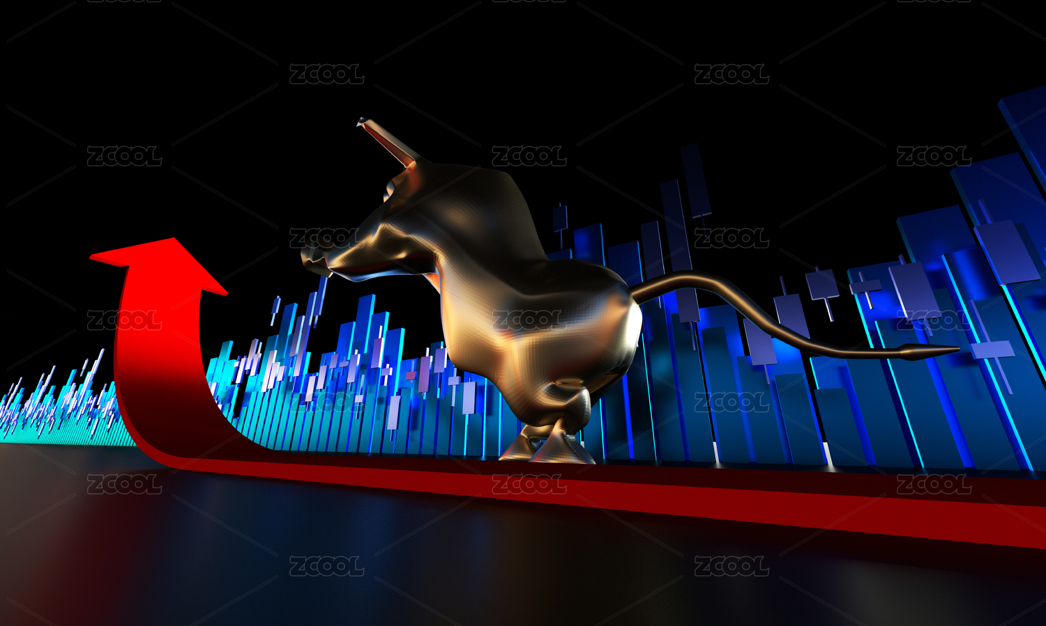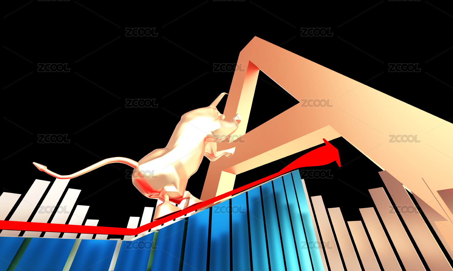 成功箭头与金牛,经济发展与牛市