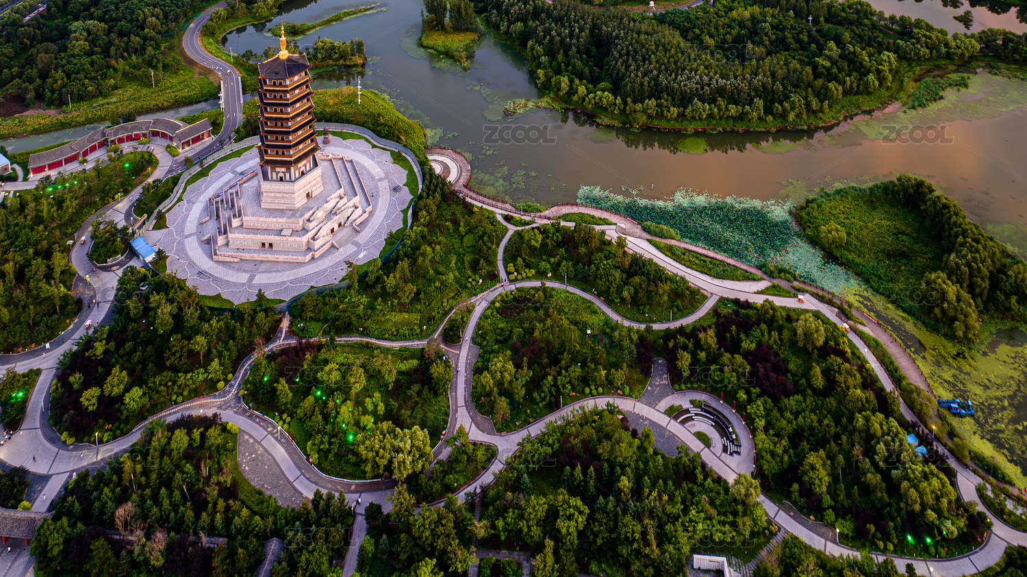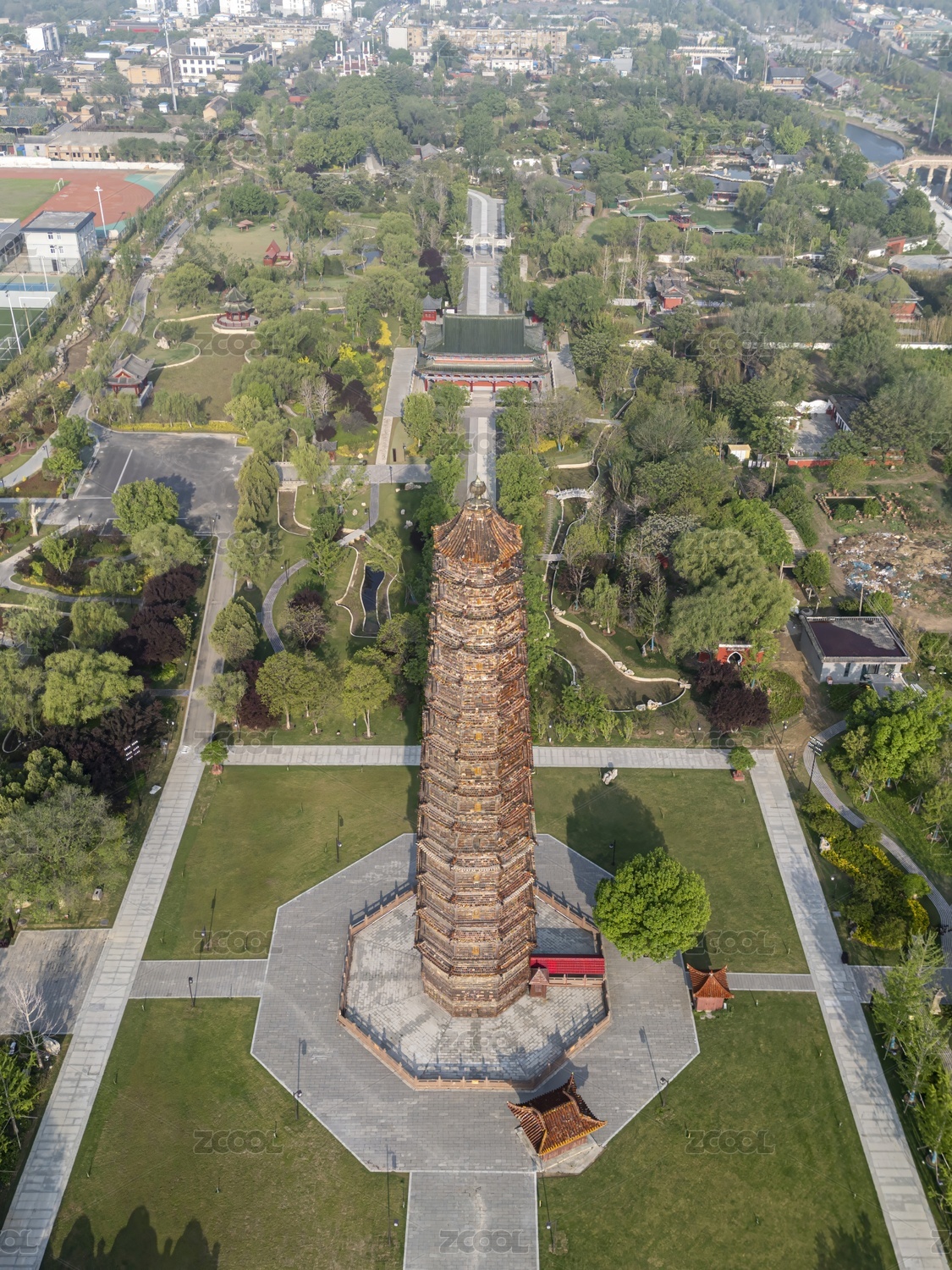 中国河南省开封市铁塔公园航拍