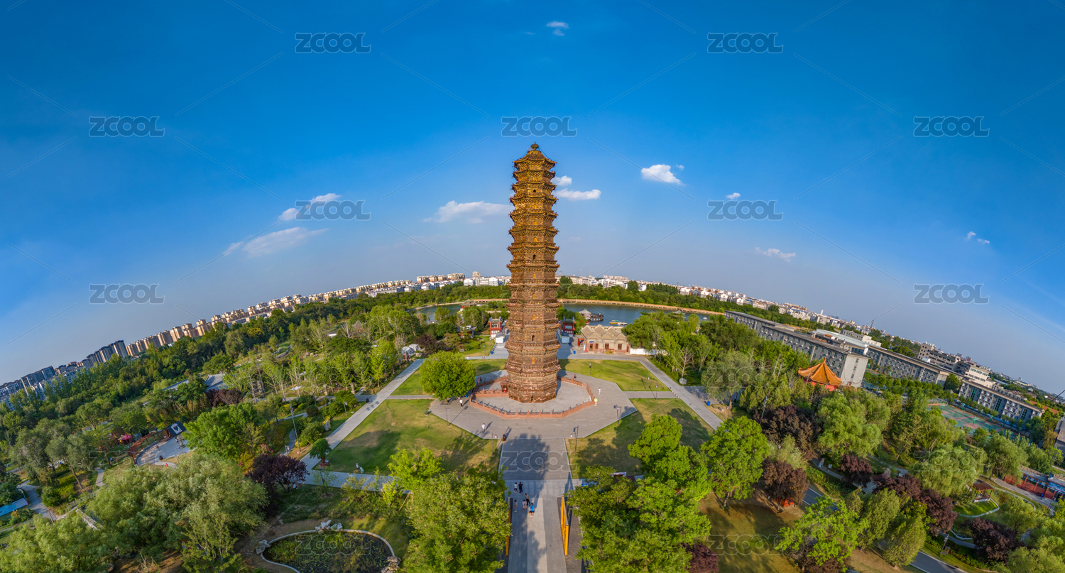 航拍河南开封铁塔公园北宋开宝寺塔祐国寺塔