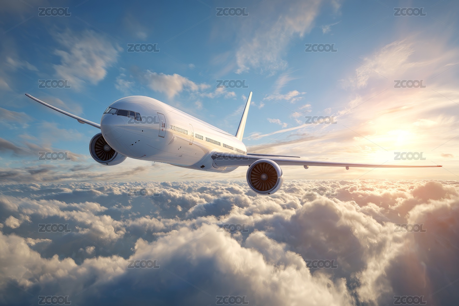 飞机翱翔云海蓝天图