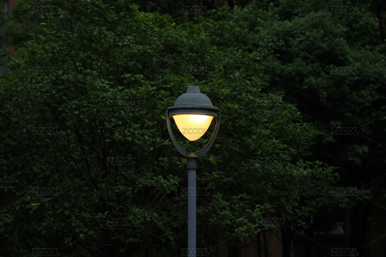 户外景观灯和树上的绿色叶子