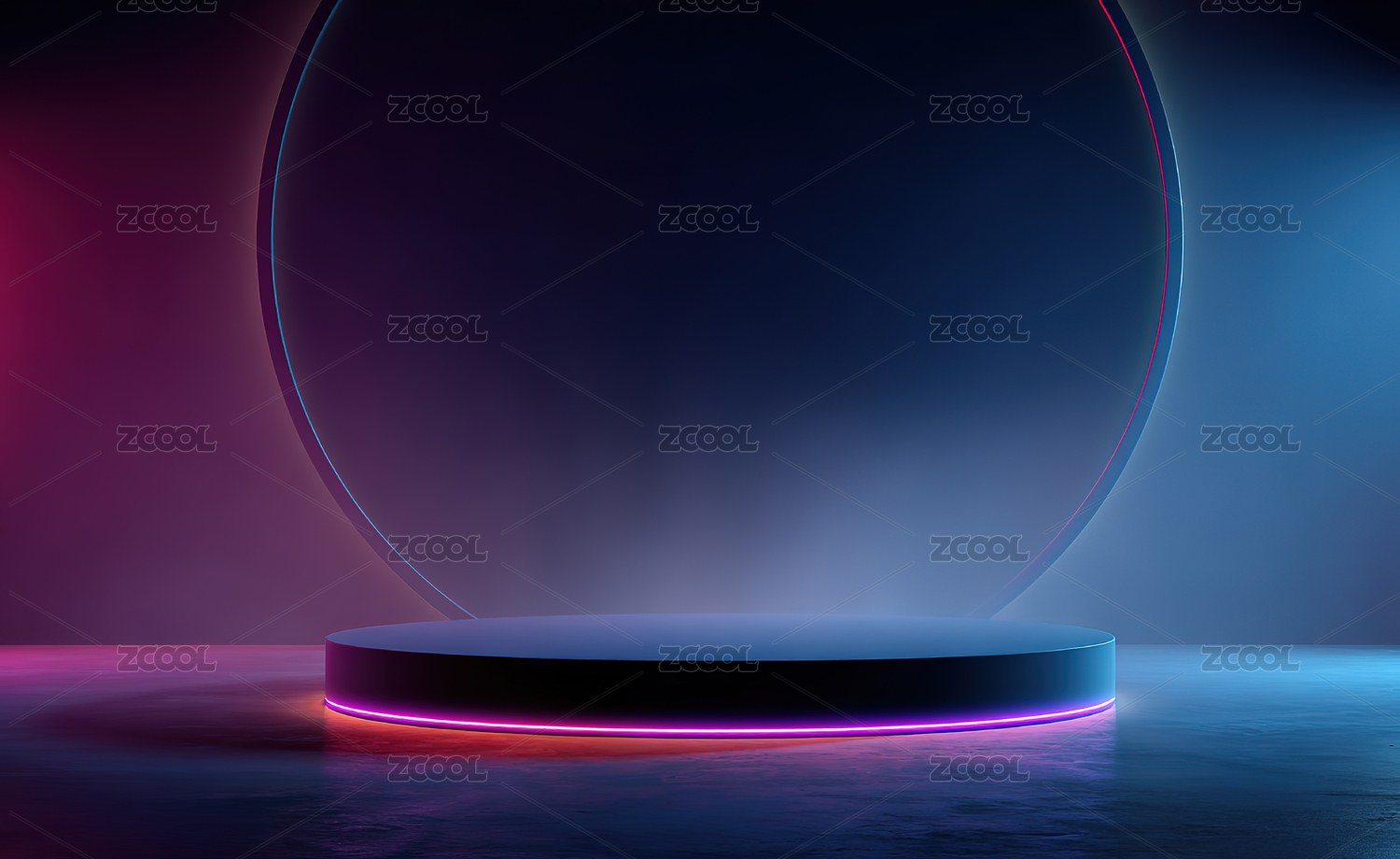 霓虹灯照射下的圆形展台,烟雾缭绕
