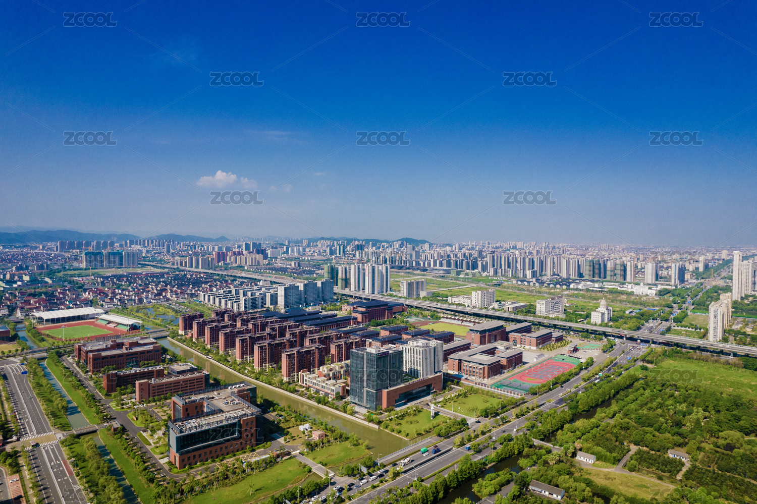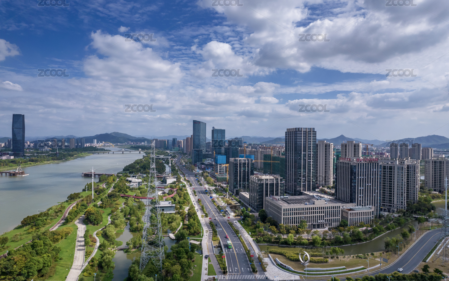 绍兴市柯桥区城市风光航拍,瓜渚湖湖滨公园