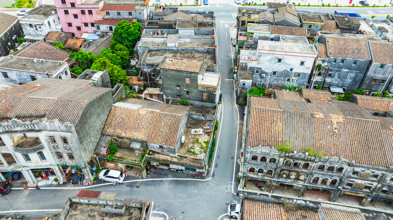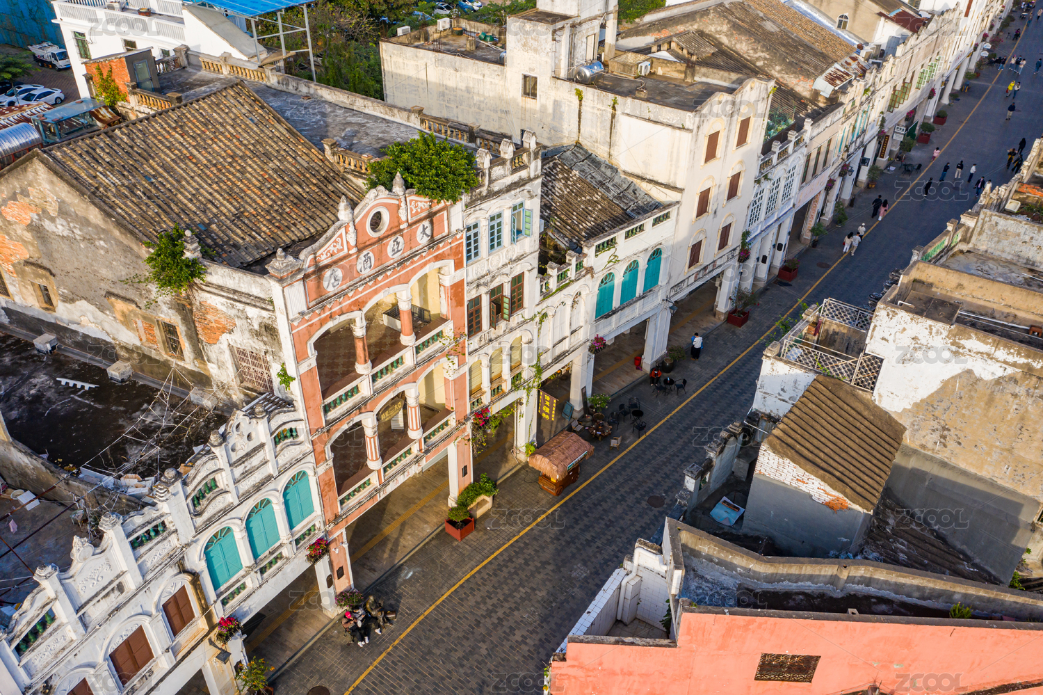航拍海南海口骑楼老街街区历史文化建筑群落
